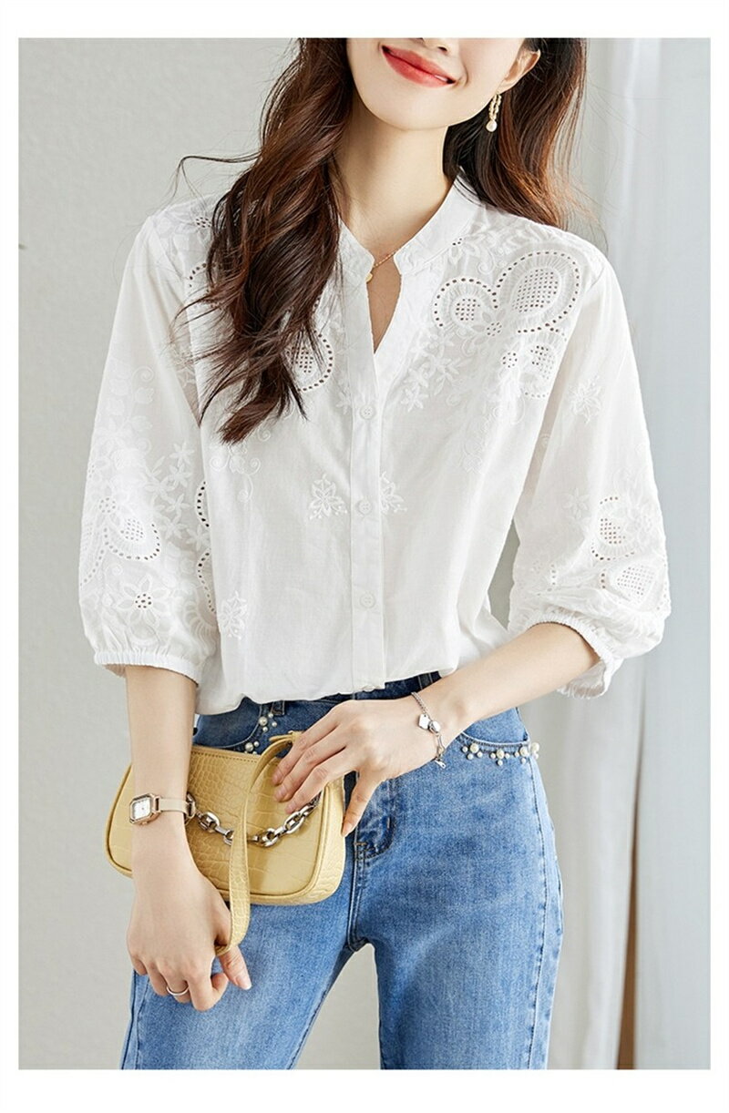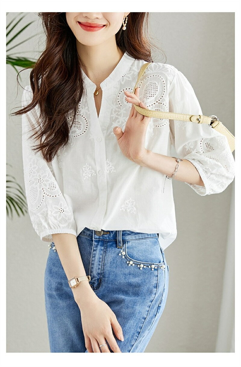 長袖 シャツ ブラウス シャツブラウス 白シャツ 刺繍 綿100 長袖トップス チュニック 長袖シャツ 長袖ブラウス 綿 コットン 花柄 刺繍シャツ きれいめ 白 ホワイト ゆったり 体型カバー 通勤 カジュアル きれいめ フォーマル 大人 通学 抜け感