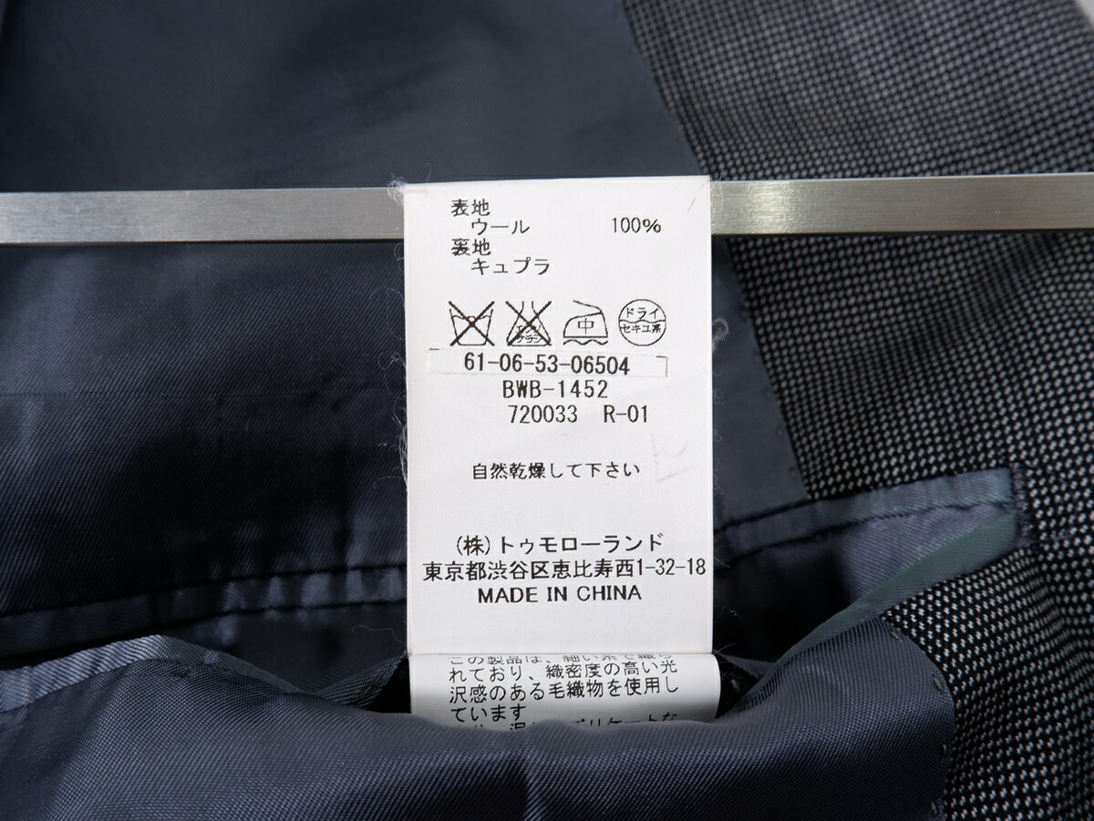 TOMORROWLANDトゥモローランド BLUE WORK NIKKE生地 ウールセットアップスーツ ジャケットパンツ【MSTA75742】【グレー】【44】【中古】【沖縄.離島以外 送料無料】【DM240827】