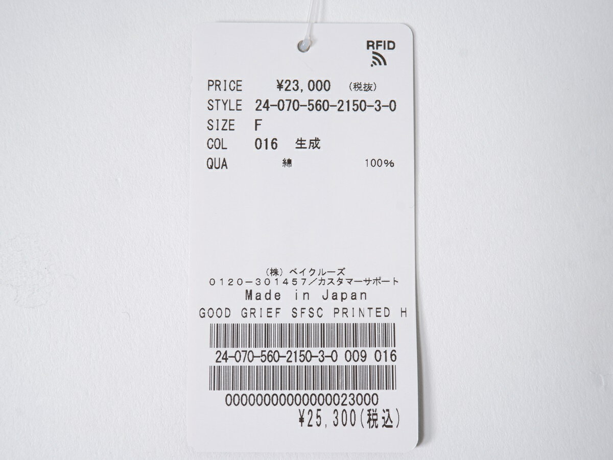GOOD GRIEF!グッドグリーフ L'Appartementアパルトモン購入2024AW SFSC PRINTED HENLEY NECK TOPカットソー新品【LTSA76655】【ナチュラル】【フリー】【未使用】【沖縄.離島以外 送料無料】【DM241210】