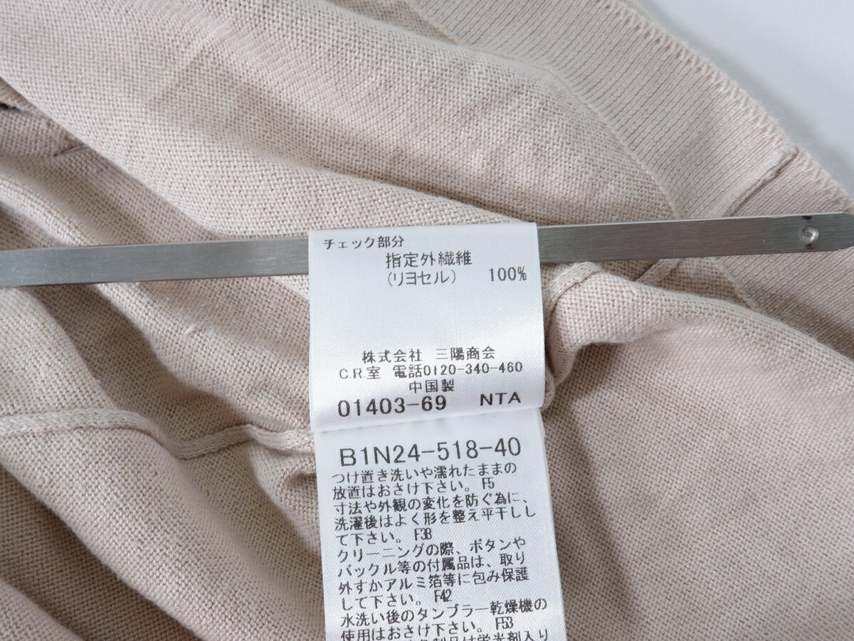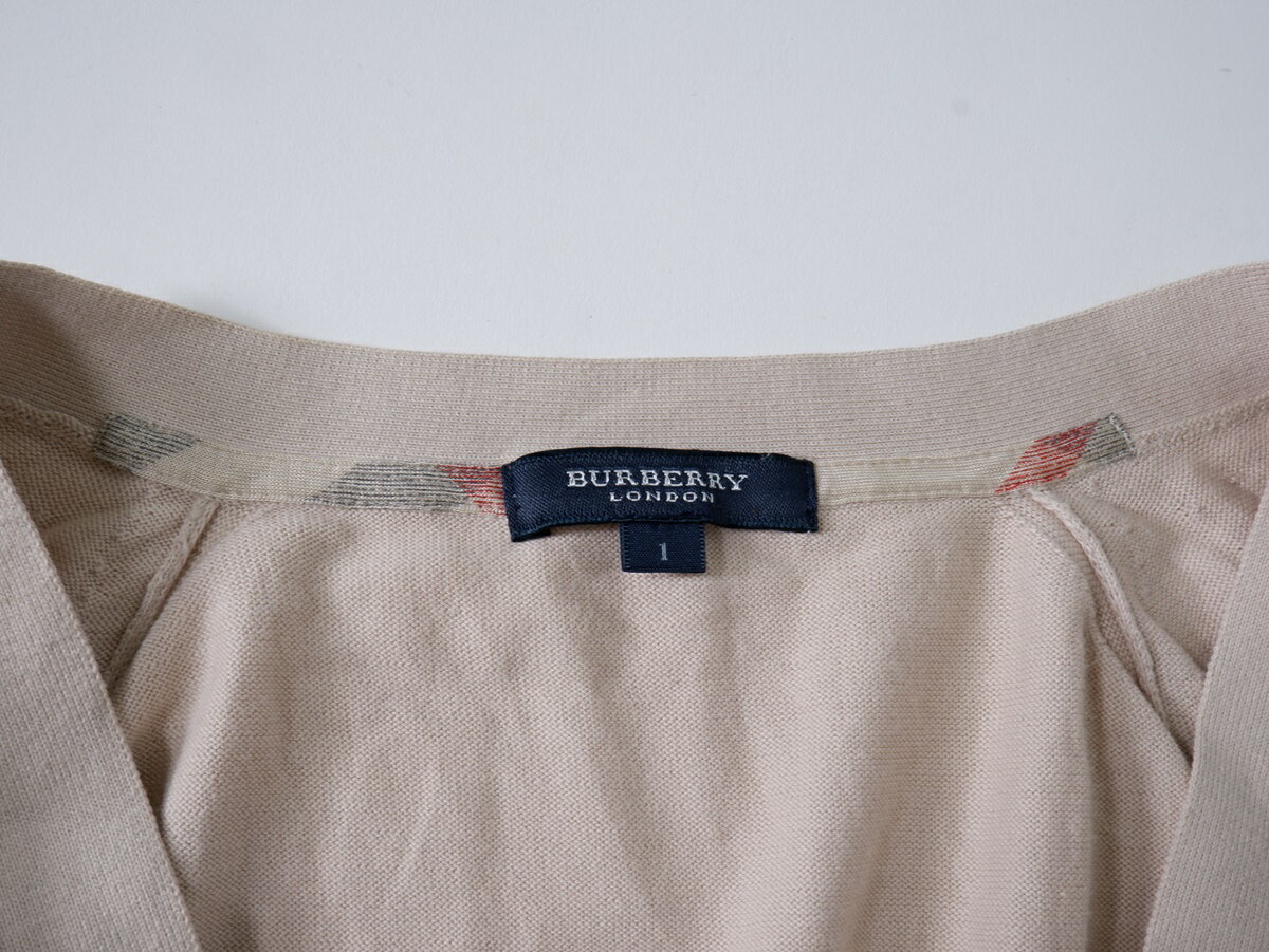 BURBERRY LONDONバーバリー ロンドン 裏チェック使い ホースマーク刺繍 ベルト付ハイゲージニットカーディガン【LKNA77876】【ベージュ】【1】【中古】【沖縄.離島以外 送料無料】【DM250415】