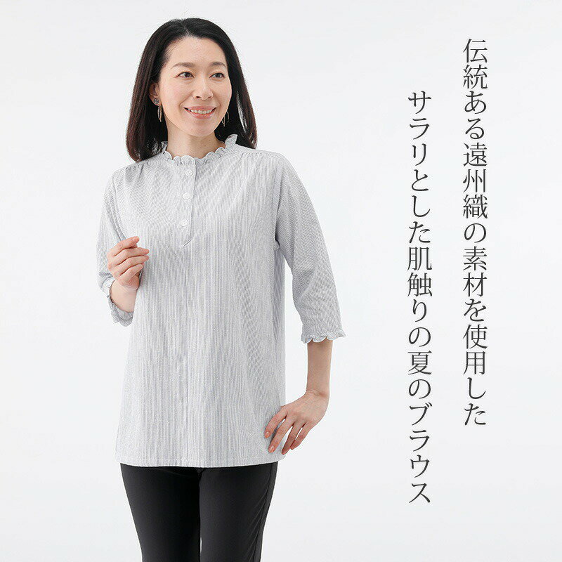 遠州織 さらさらブラウス 【38172】綿100% 日本製 高級 おしゃれ レディース 春 夏 婦人服 婦人 上品 ミセス 母の日 贈り物 ギフト プレゼント
