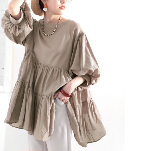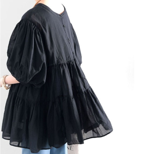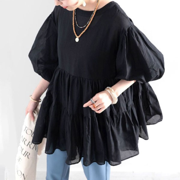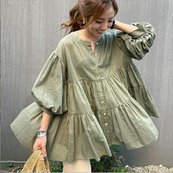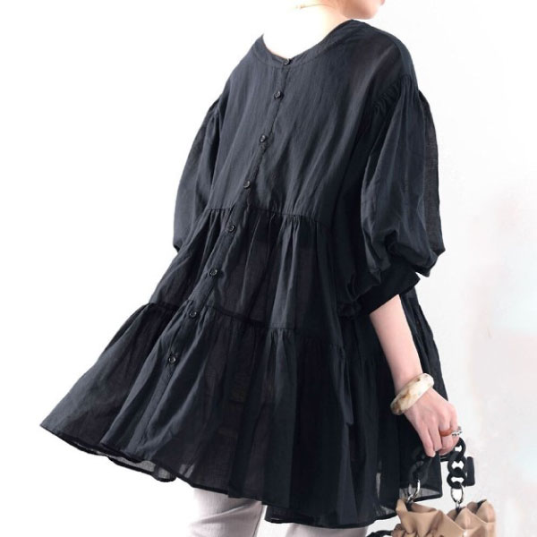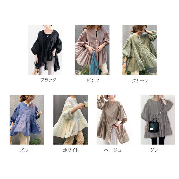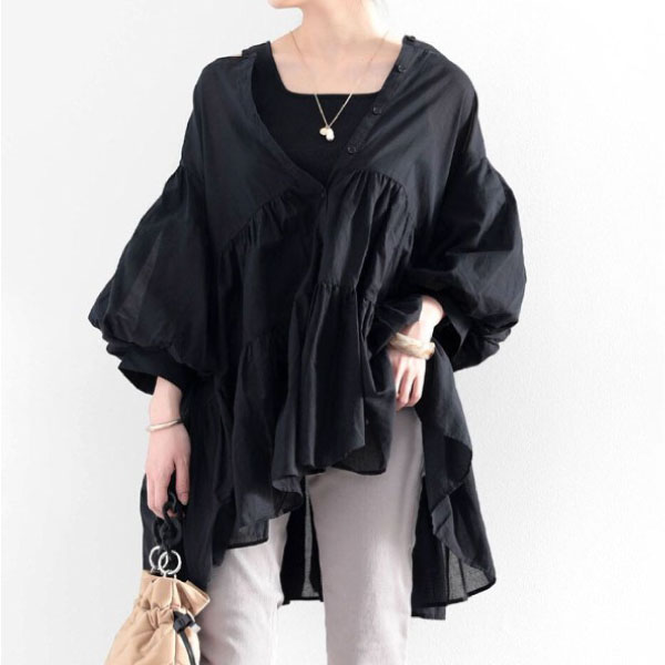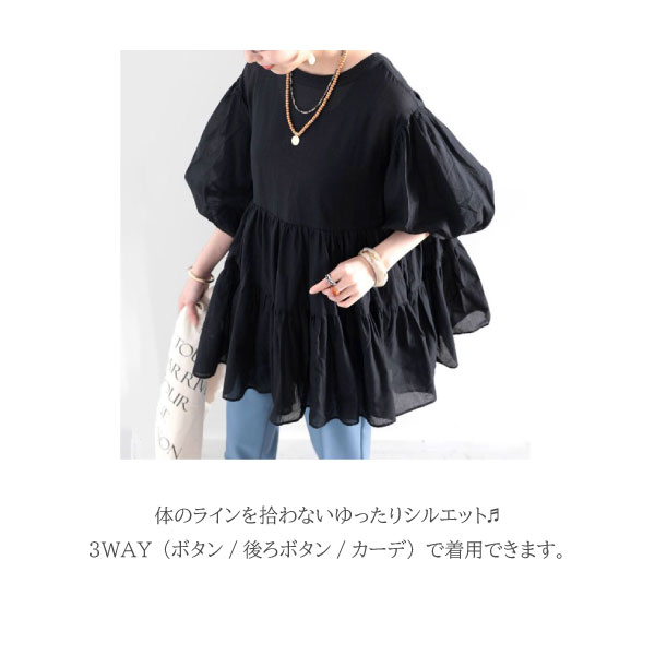 【ブラックのみ即納】レディース トップス シャツ ブラウス ティアードブラウス オーバーサイズ ゆったり 3WAY バルーンスリーブ バンドカラー 半袖 チュニック カーデ 羽織 ブラック 夏 人気 オフィス 大人女子 おしゃれ かわいい