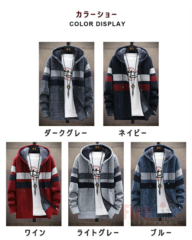 カーディガン メンズ 裏ボア コート メンズ ジャケット ニットパーカー カジュアル ジップアップ アウター 長袖 フード付き 30代40代50代 秋冬 暖かい 通学 通勤 厚地 防寒 送料無料