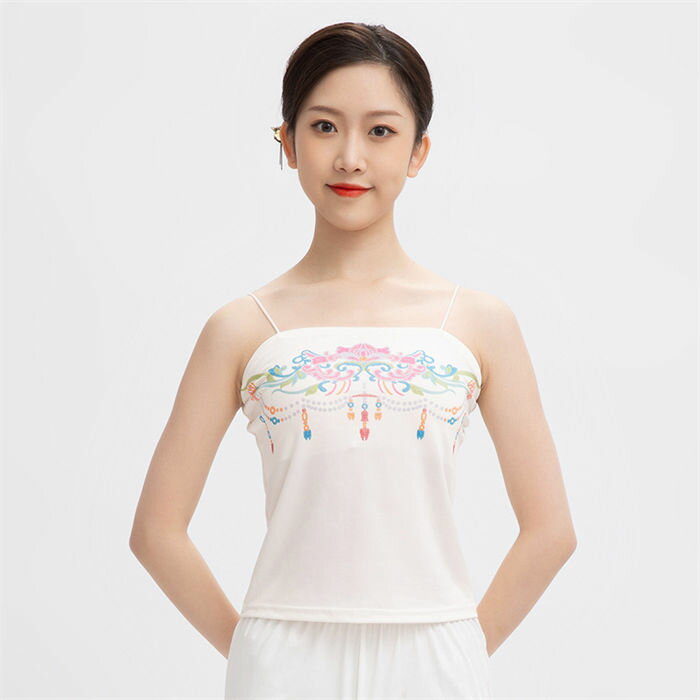 タンクトップ レディース キャミソール トップス 花柄 プリント ダンス衣装 インナー ベストのみ 白 上着