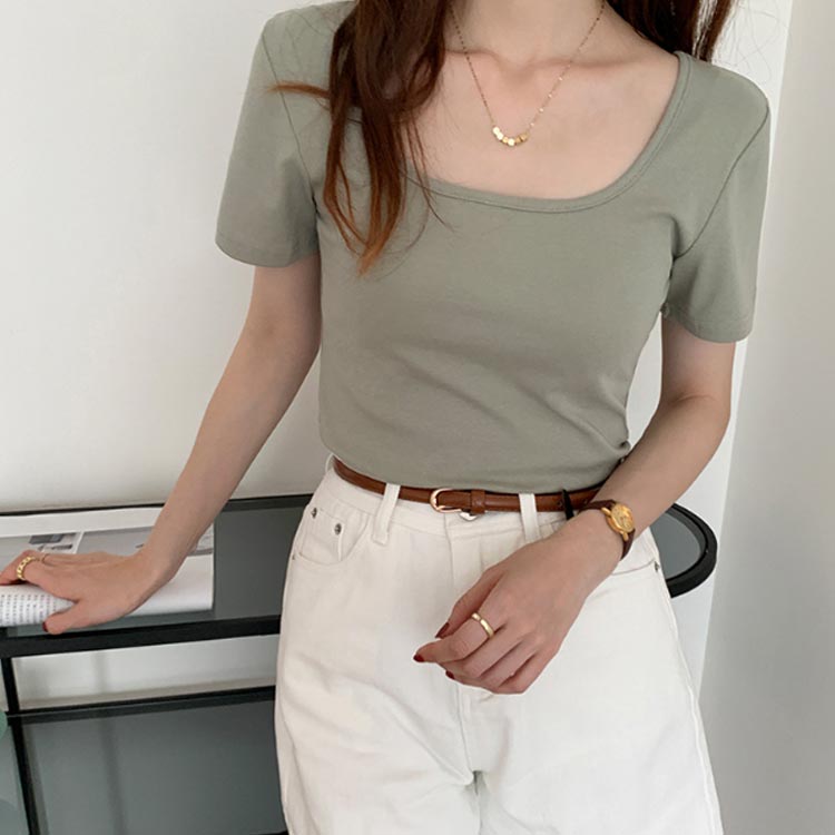 きれいめ カジュアル スクエアネック トップス レディース カットソー 通学 XL オフェス 通勤 無地 大人可愛い カットソー Tシャツ 半袖 エレガント 上品 S M L シンプル 着瘦せ tシャツ オフィス OL プレゼント フェミニン