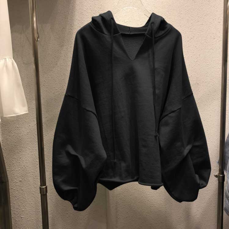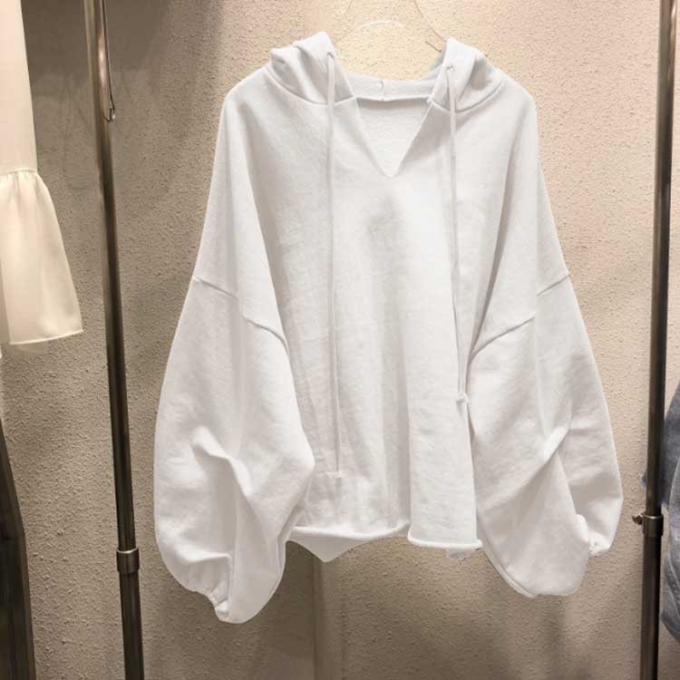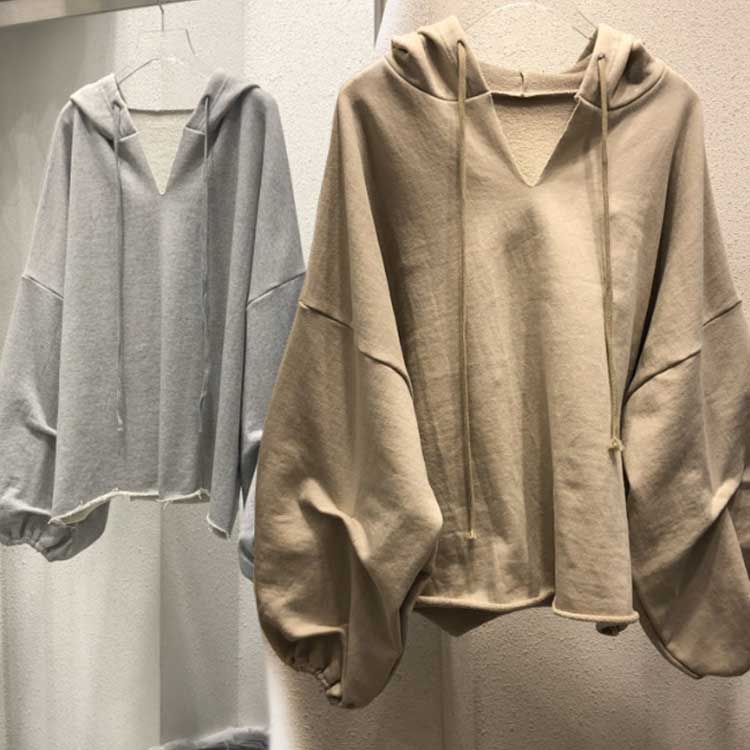 薄手 パーカー 長袖 バルーン袖 パーカー ぽわん袖 フード付き トップス プルオーバー ドロップショルダー シンプル 無地 春秋 レディース ビッグシルエット ゆったり スウェットパーカー カジュアル