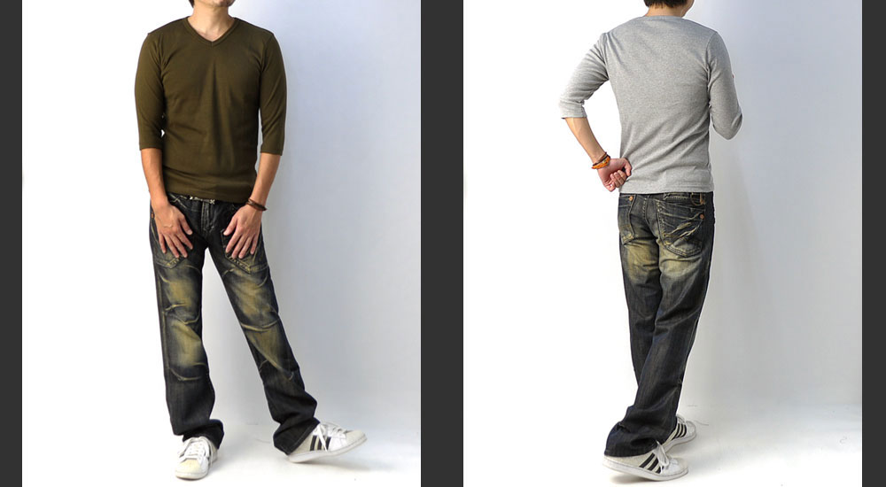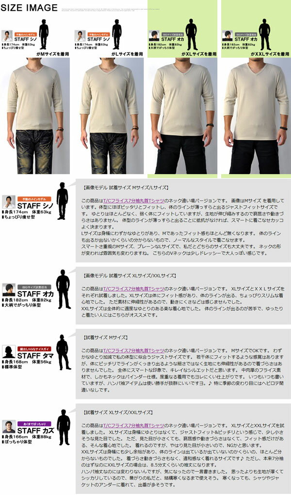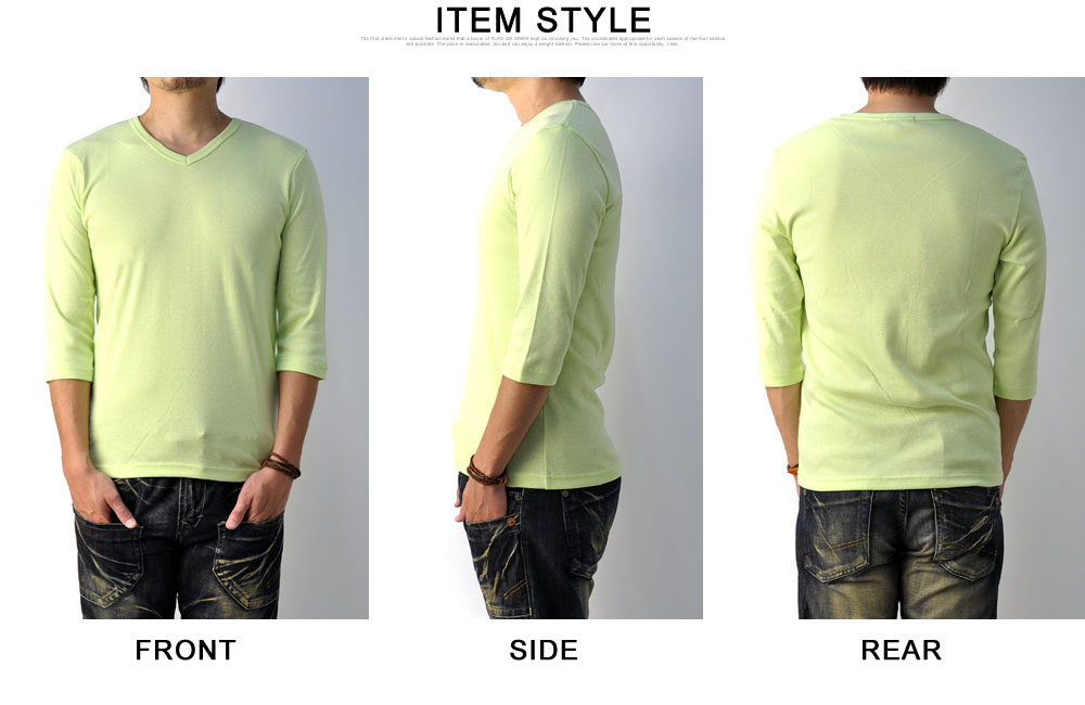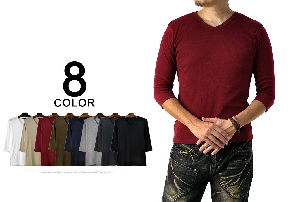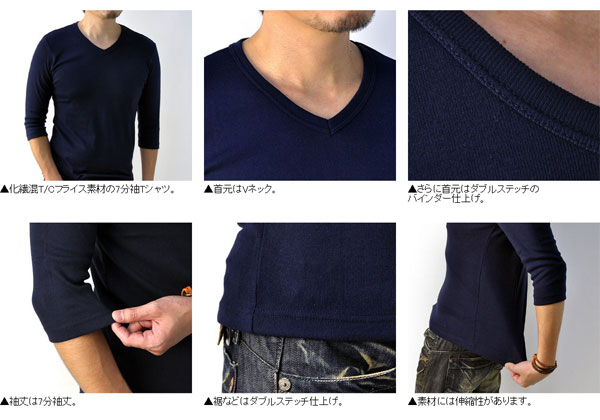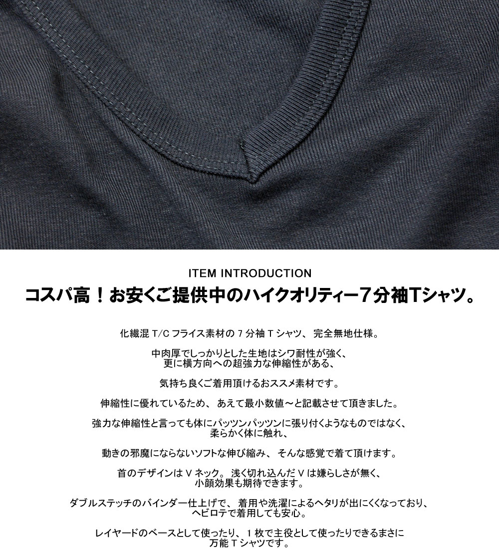 Tシャツ メンズ 七分袖 7分 Vネック トップス フライス生地 ストレッチ カットソー【E1C】【パケ2】