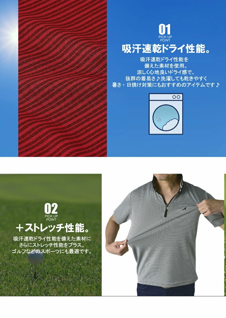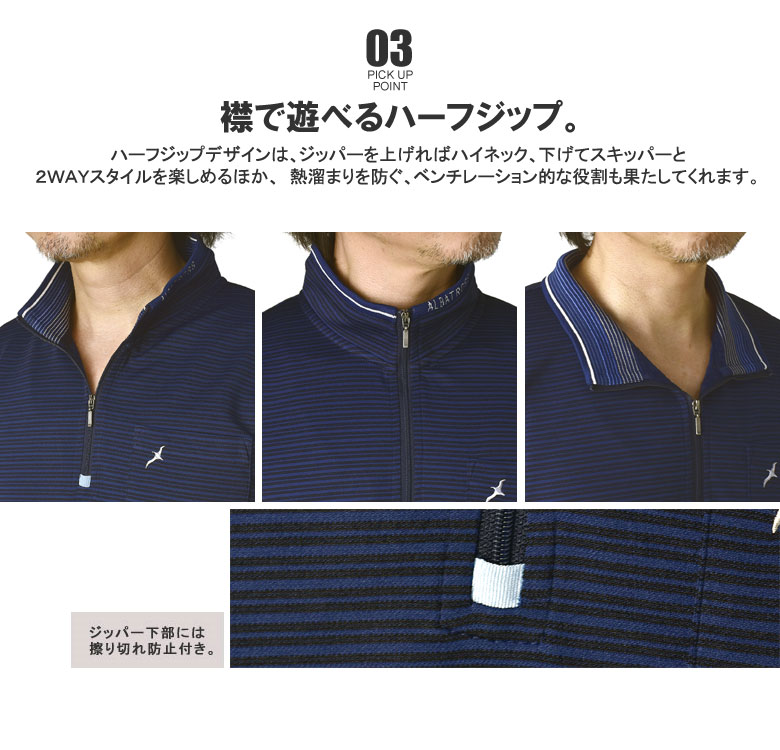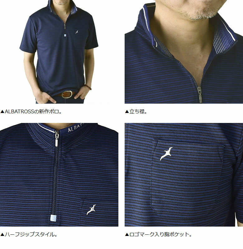 ALBATROSS アルバトロス メンズ 吸汗速乾 ハーフジップ ポロシャツ 半袖 ゴルフウェア 立衿 トップス カットソー【B1F】【パケ1】