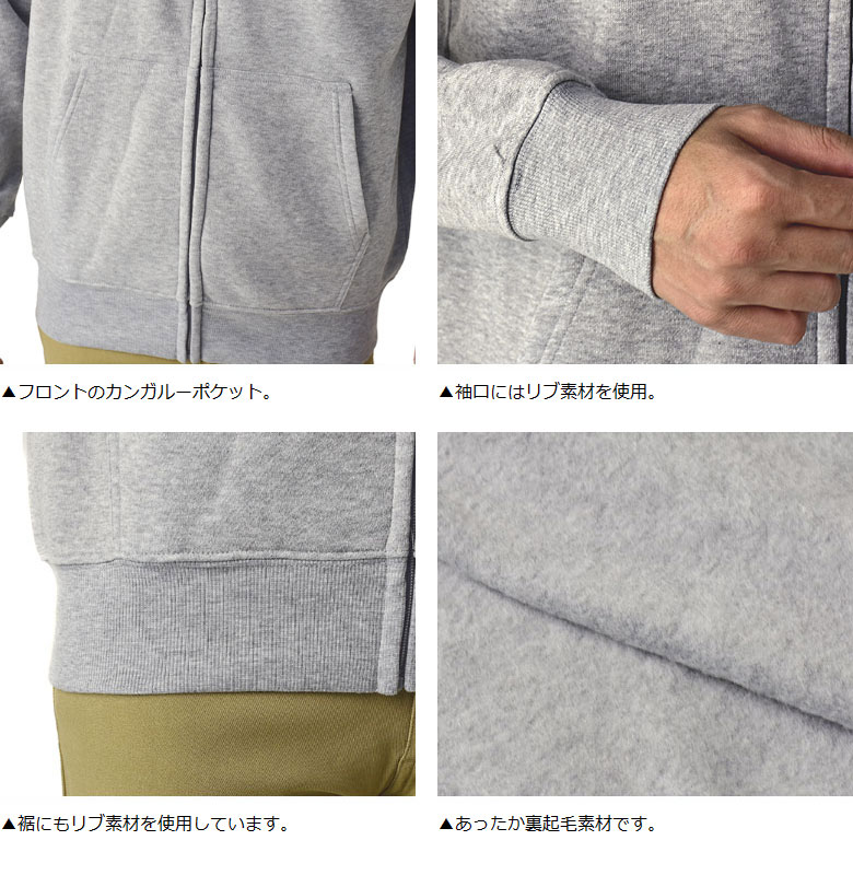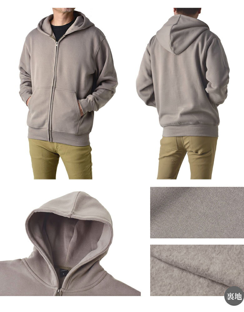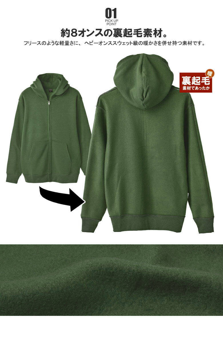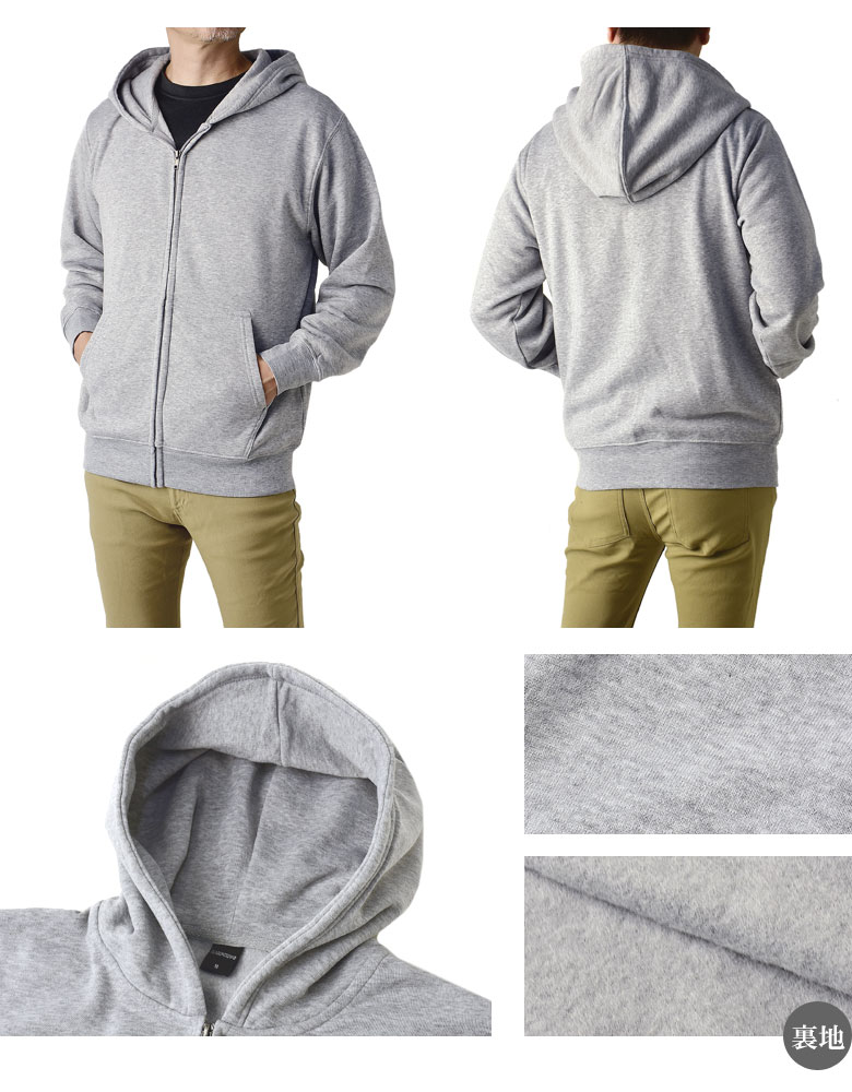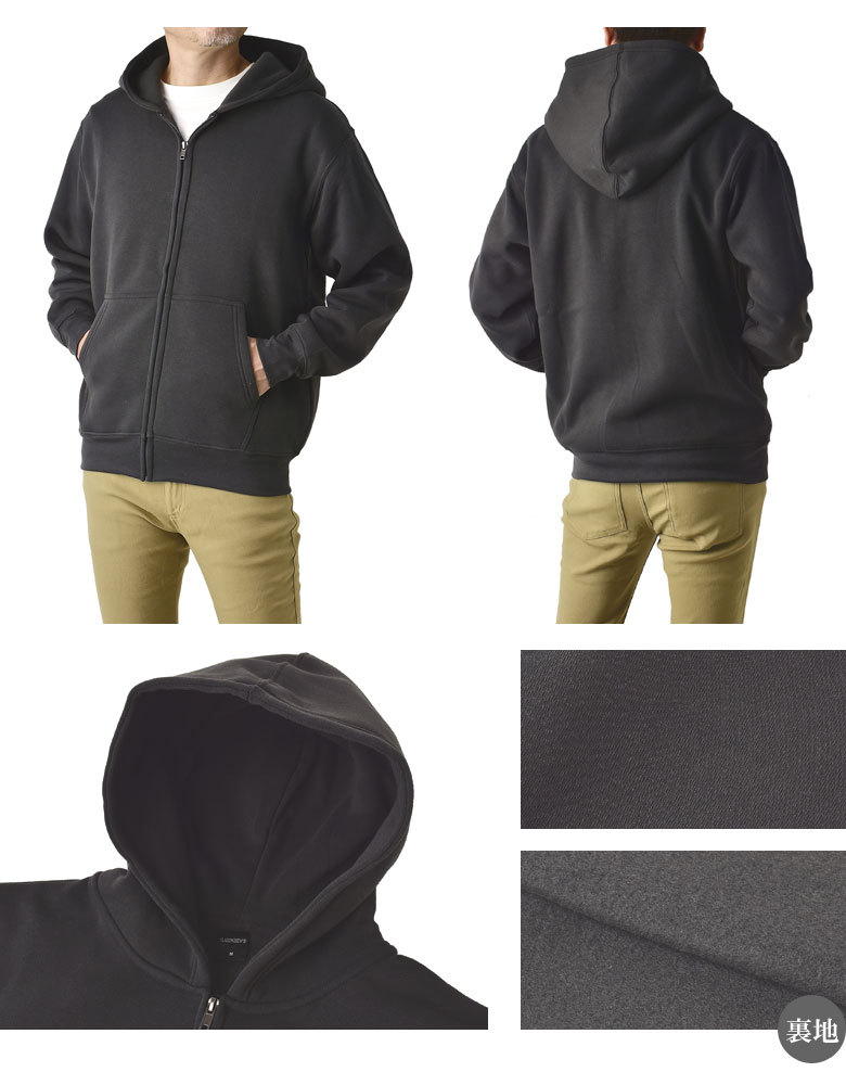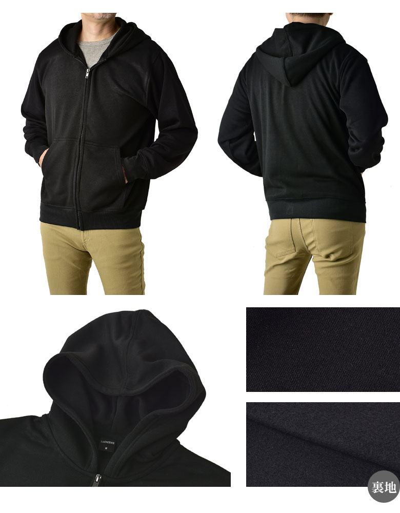 裏起毛 フルジップパーカー メンズ 無地 スウェットパーカー 厚手 軽量 アウター【A2U】