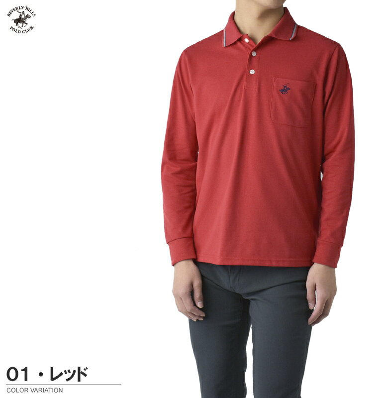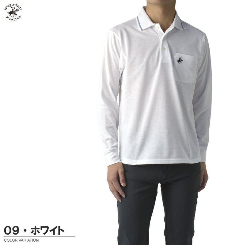 BEVERLY HILLS POLO CLUB BHポロクラブ メンズ 鹿の子 長袖 ポロシャツ リブ襟 ライン ワンポイント 刺繍 ポケット ホース ゴルフ 正規品【A5E】【パケ1】