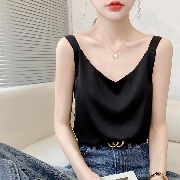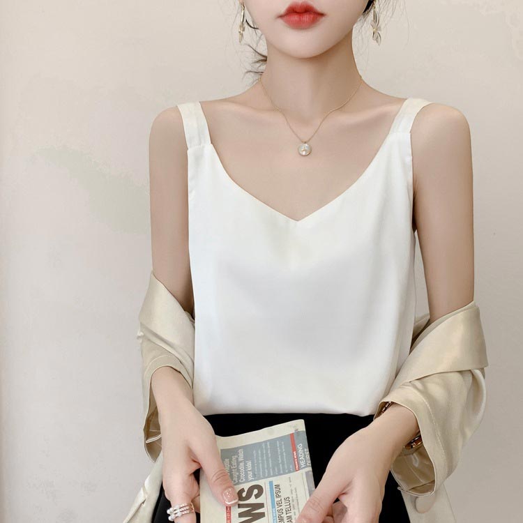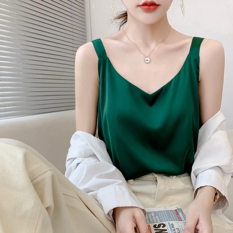 サテン キャミソール レディース トップス インナー 広 ストラップ Vネック 大きいサイズ ノースリーブ ツルツル シルク Vネック 部屋着 ブラウス 袖なし アンダーウェア ゆったり 肌着 重ね着 上品 下着 透けない 光沢感 タンクトップ 高品質 敏感肌 保温 吸湿 ショート丈