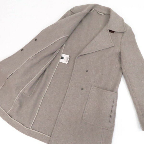 【美品】ETRO エトロ ヘリンボーン カシミヤ混 ウール ツイード ロング チェスター コート アウター size40 グレージュ イタリア製 レディース