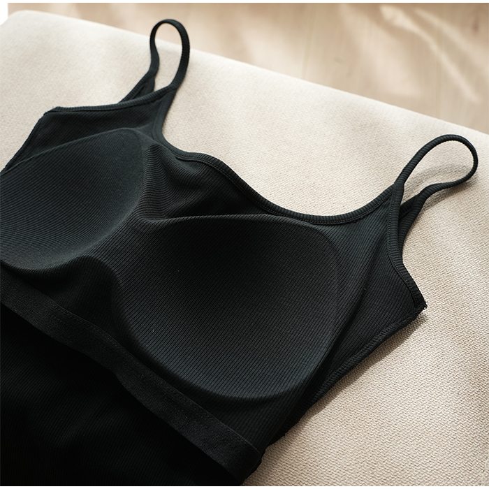 キャミソール カップ付き スクエアネック レディース ブラトップ ノースリーブ 下着 肌着 婦人 インナー トップス リブ ブラ デイリー 柔らかい キャミ シンプル 伸縮性 無地 体型カバー 春 夏 秋 5686685 スイモク【水沐良品】