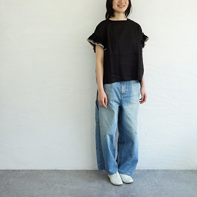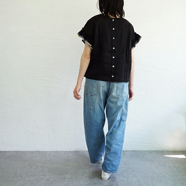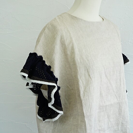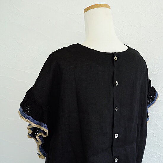 【送料無料】mao made(マオメイド)袖フリルリネン2wayブラウス