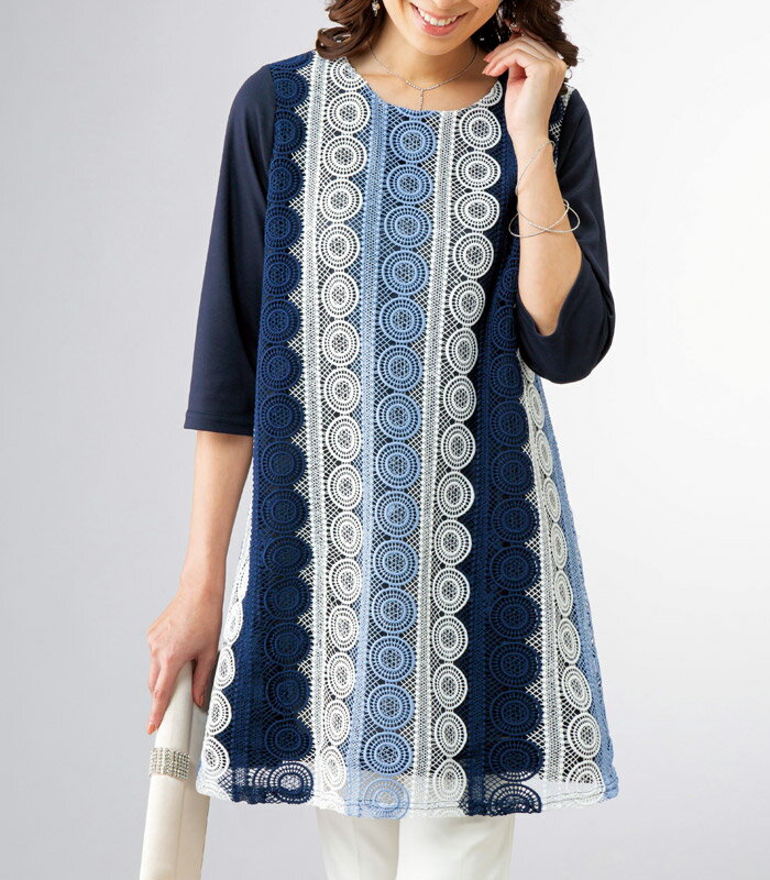 レース刺しゅうエレガントチュニック M L LL / レース 刺繍 エレガント チュニック ミセス 大人 ファッション レディース 上品 春 夏