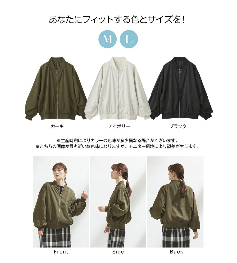 MA-1ブルゾン レディース ブルゾン ジャケット M L 春 秋 冬 羽織り 大人 カジュアル シンプル 重ね着 ライトアウター ミリタリージャケット ミリタリーブルゾン スカジャン 軽い ノーカラーブルゾン ノーカラーアウター