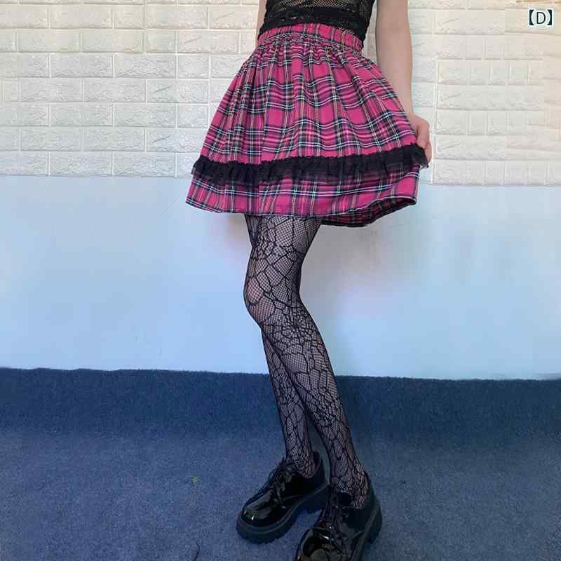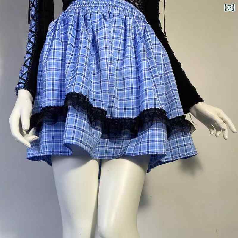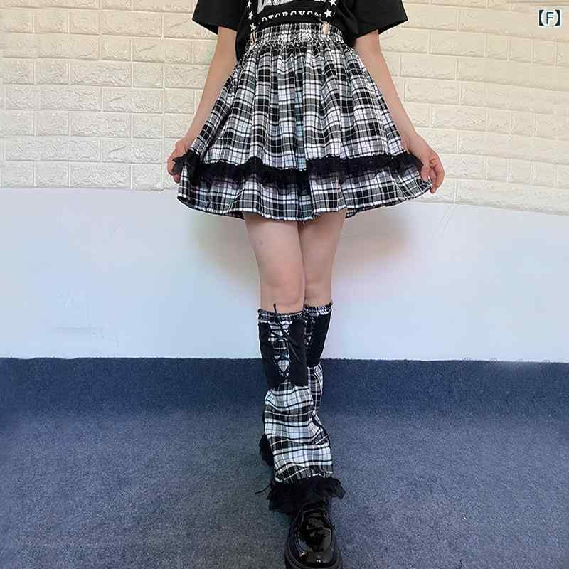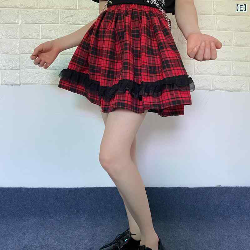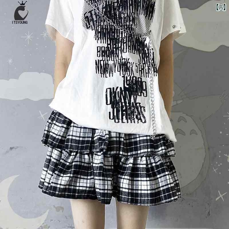地雷系 スカート 夏 ガール ゴスロリ パンク ロック ハイウエスト チェック ダブル プリーツ レッグカバー ストリート 黒 白 赤 フリル