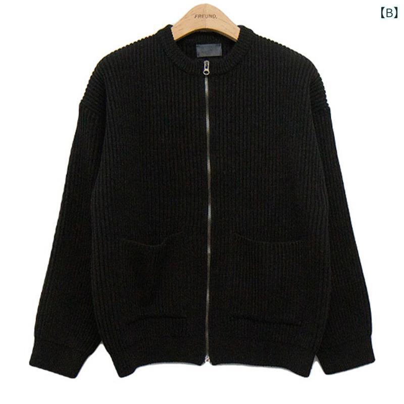メンズ カーディガン ジャケット 男性 紳士 韓国 秋 ニット セーター カジュアル 普段使い ルーズ 青 黒 ダブル ジッパー リブ ポケット