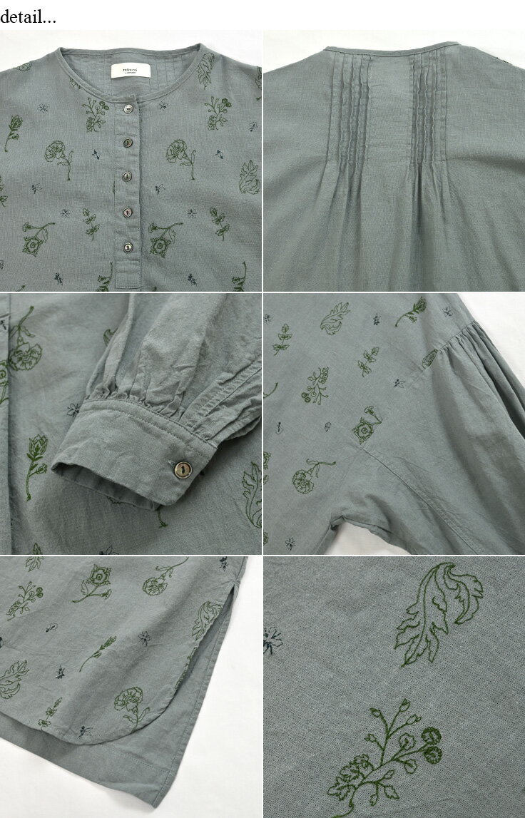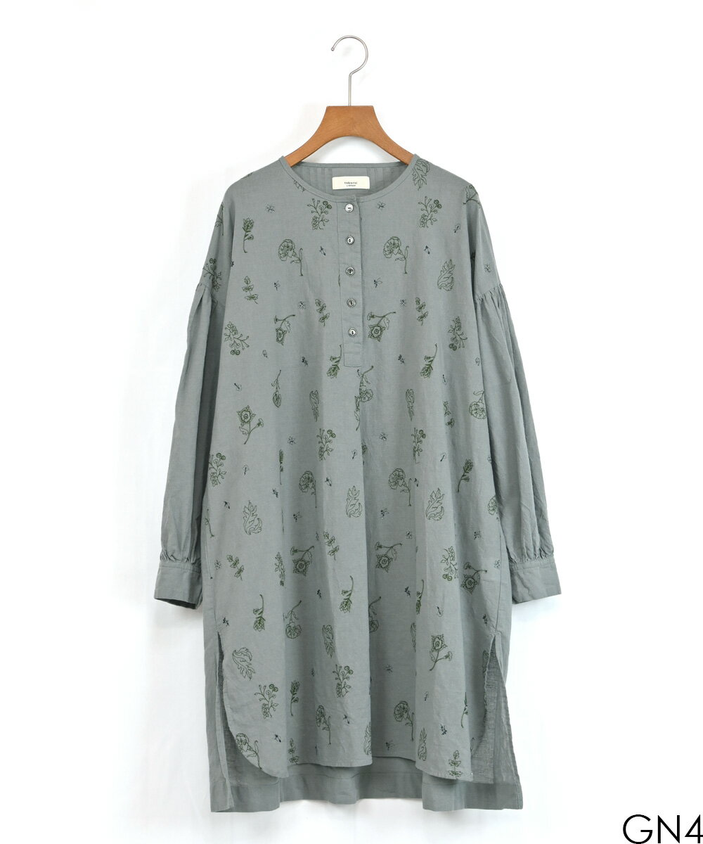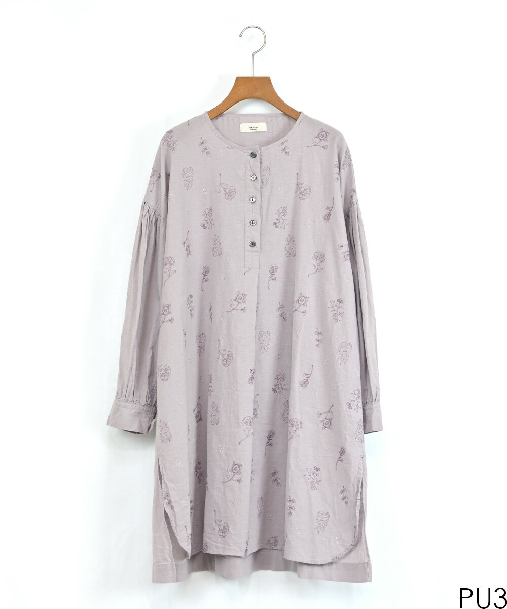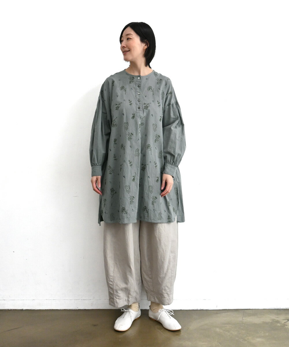 【SALE60%off】綿麻 総柄 刺繍 ヘンリー チュニック 【TK225231】【tukuroi ツクロイ】
