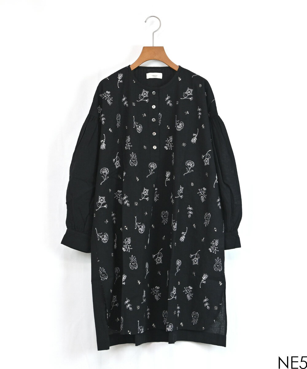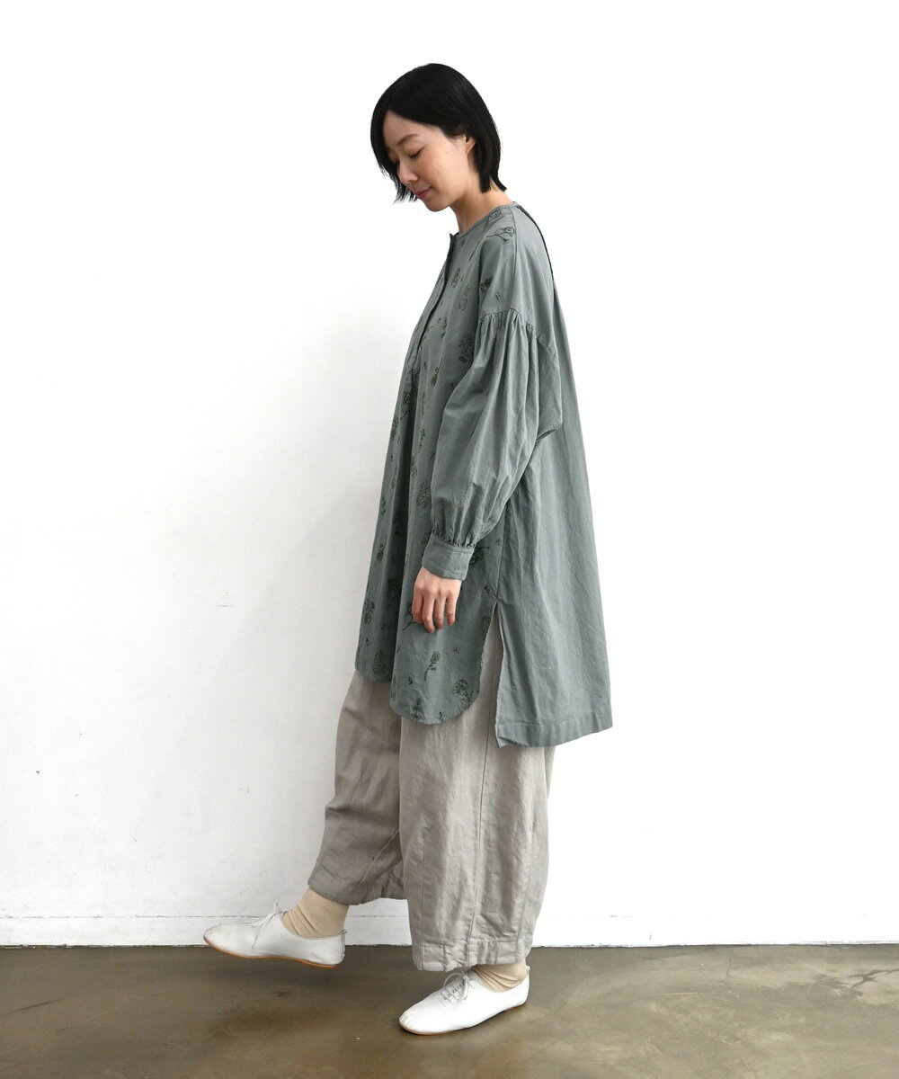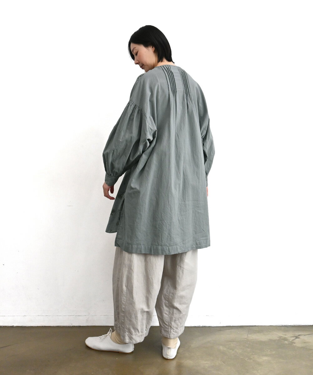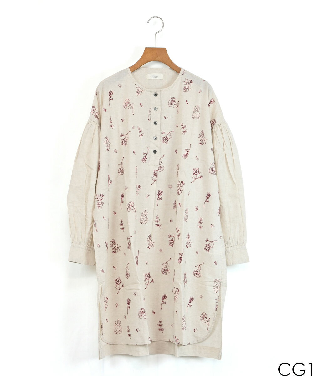 【SALE60%off】綿麻 総柄 刺繍 ヘンリー チュニック 【TK225231】【tukuroi ツクロイ】