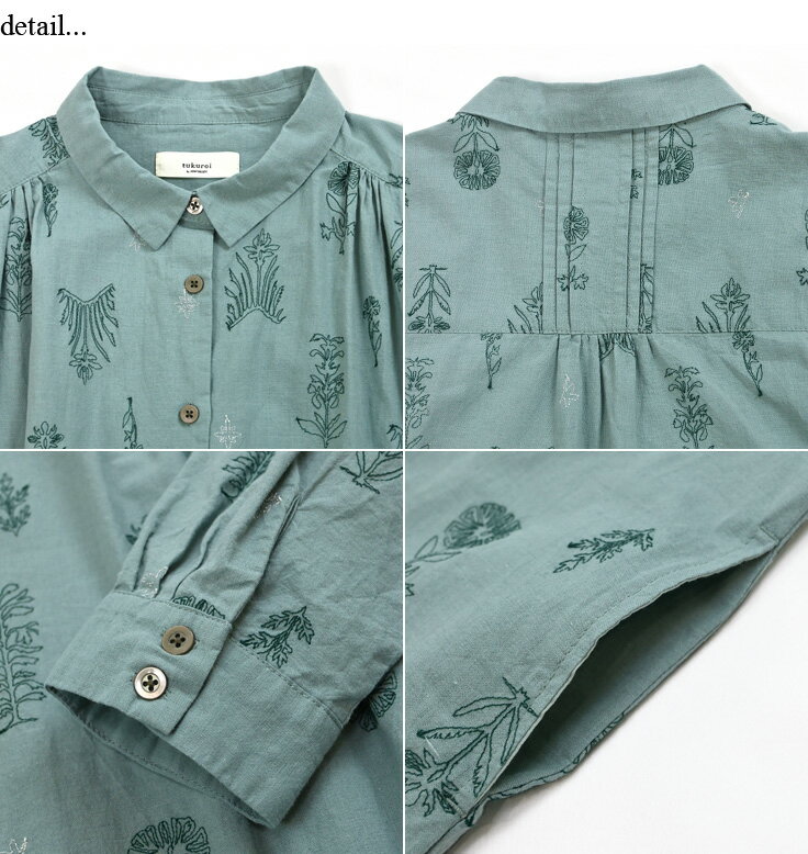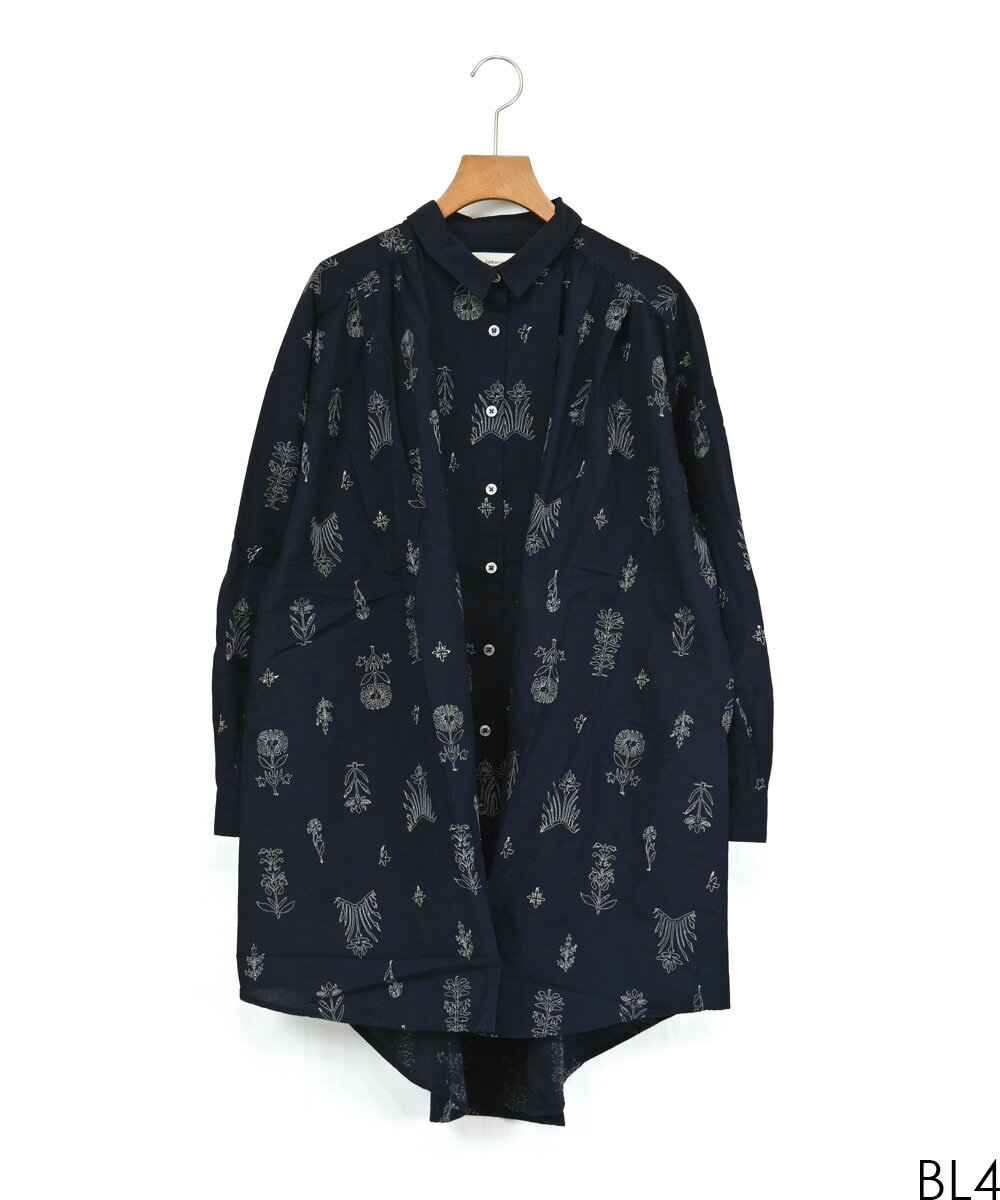 【SALE30%off】綿麻 平織 総柄 刺 シャツ チュニック 【TK214240】【tukuroi ツクロイ】