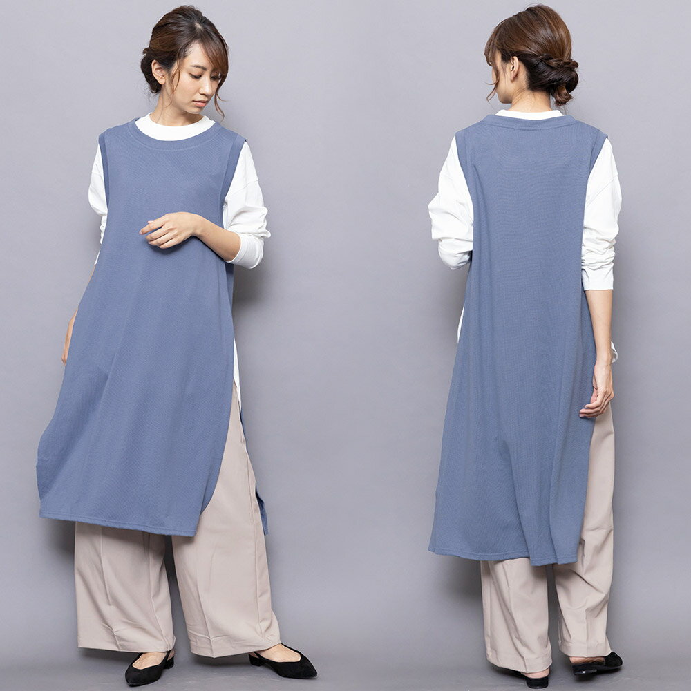【17%OFFクーポン配布中☆】ロングニットベスト ストレッチ起毛 サイドスリット クルーネック ノースリーブ 黒 無地 ゆったり トップス M L 秋 冬 春 レディース ミリアンデニ