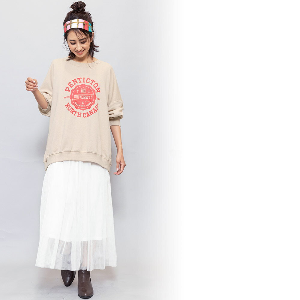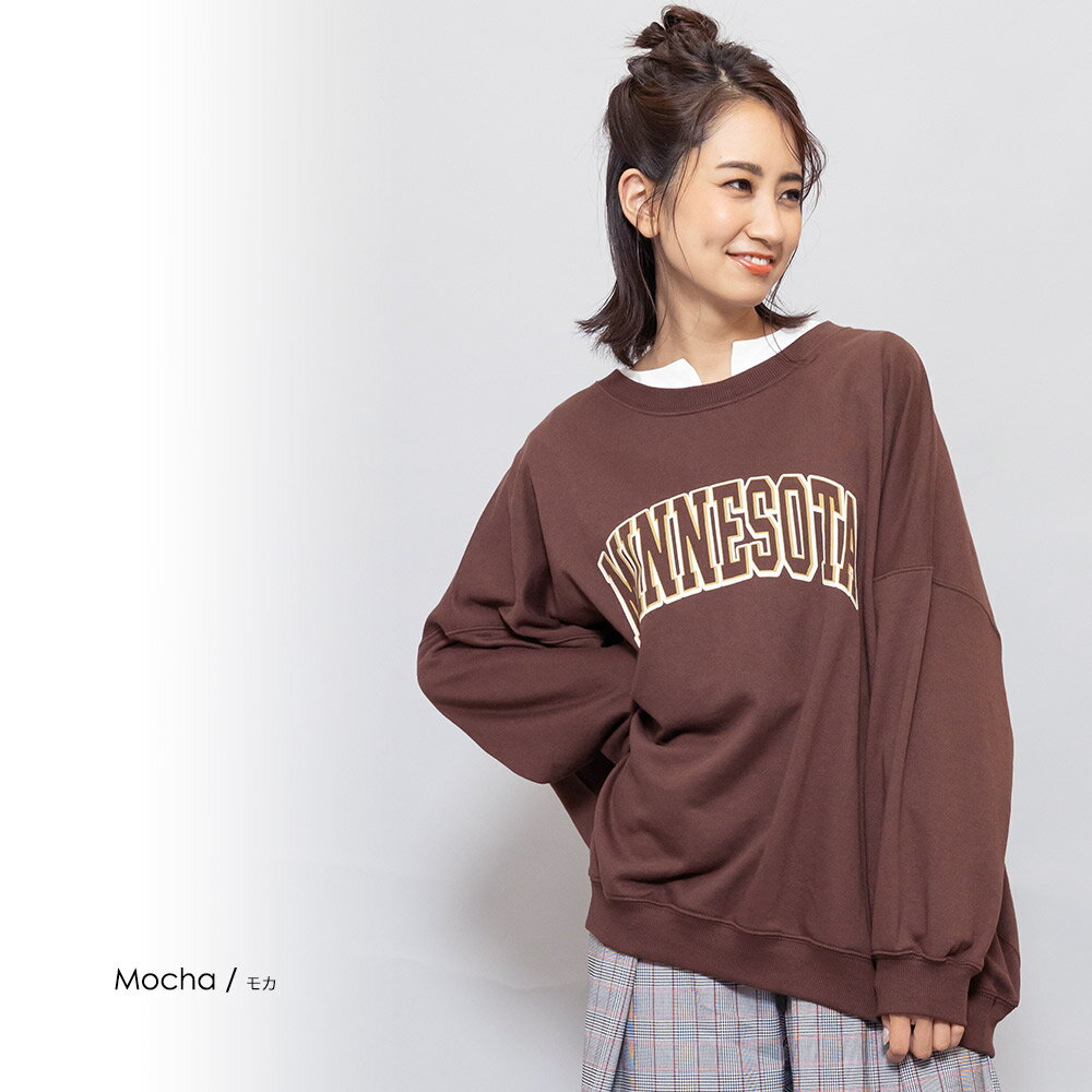 【半額クーポン配布中☆】カレッジロゴビッグスウェットPO トレーナー クルーネック ビッグシルエット ドロップショルダー 長袖 M L トップス ゆったり レディース 秋冬 ミリアンデニ対応