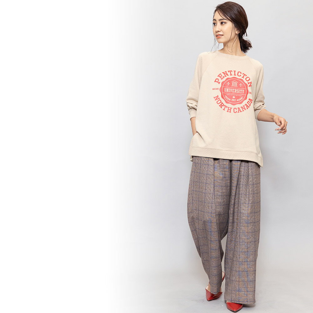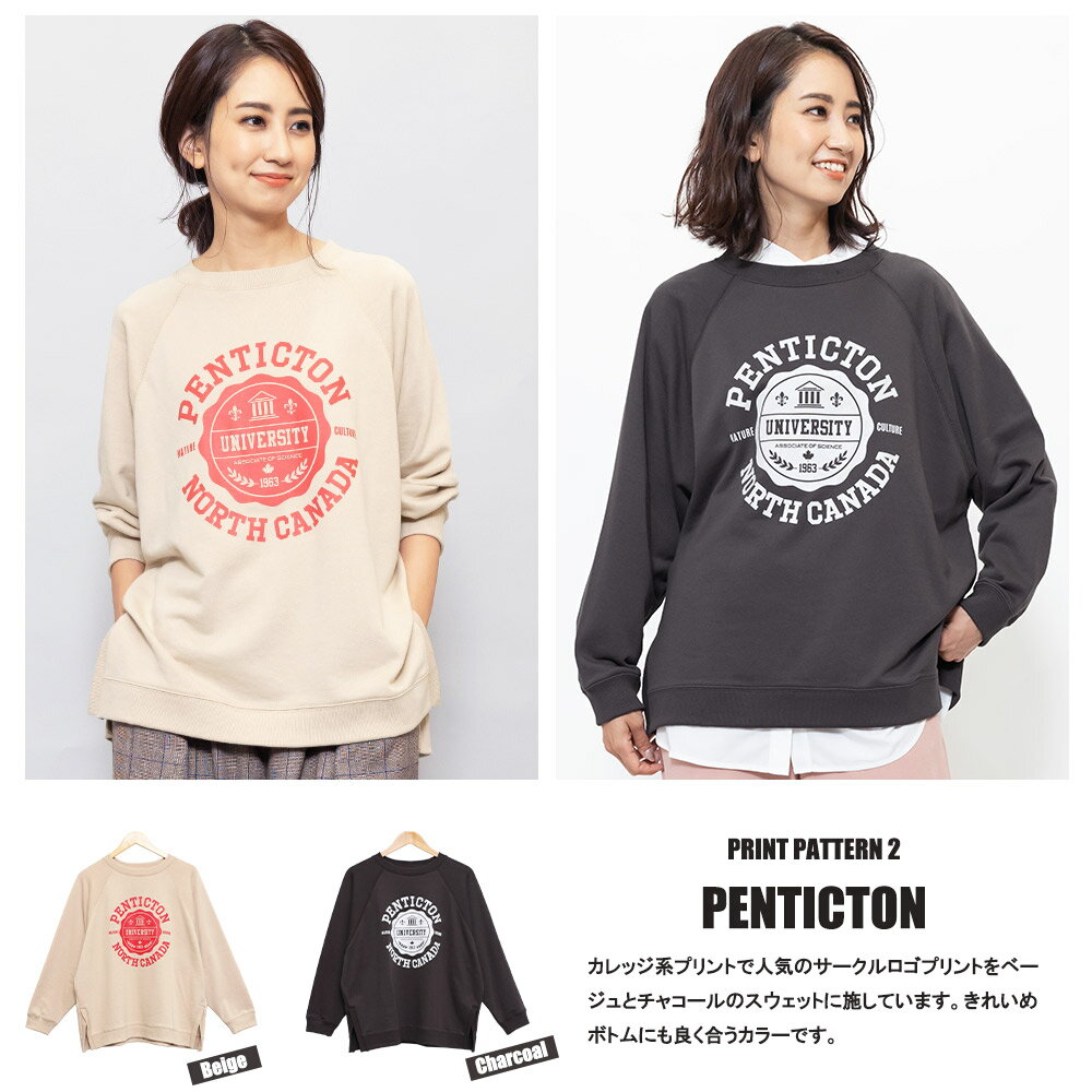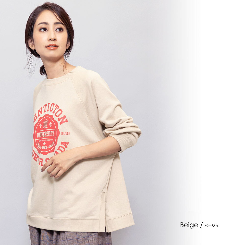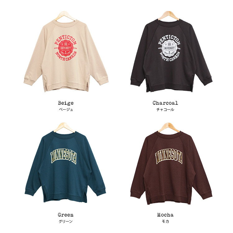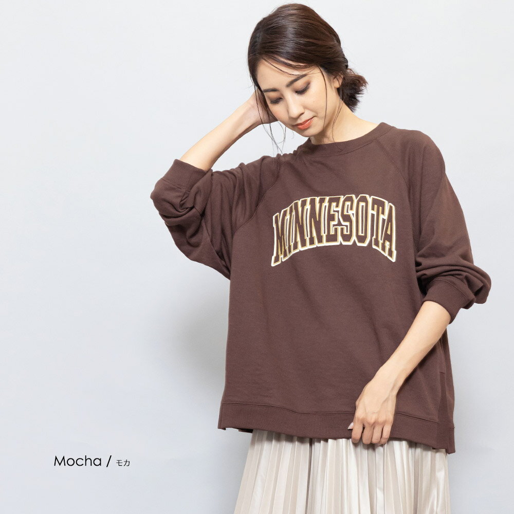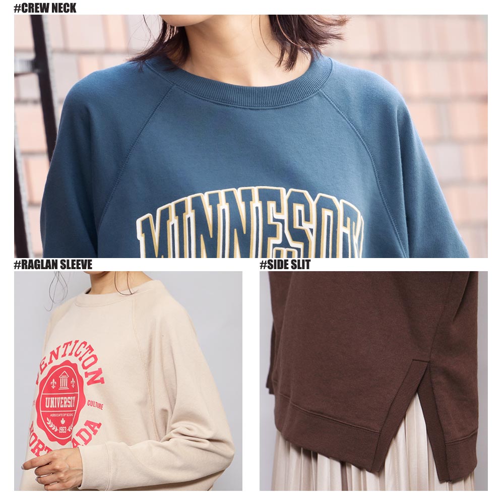 【20%OFFクーポン☆】カレッジロゴビッグスウェットPO トレーナー クルーネック サイドスリット ラグランスリーブ 長袖 M L トップス ゆったり レディース 秋冬 ミリアンデニ対応