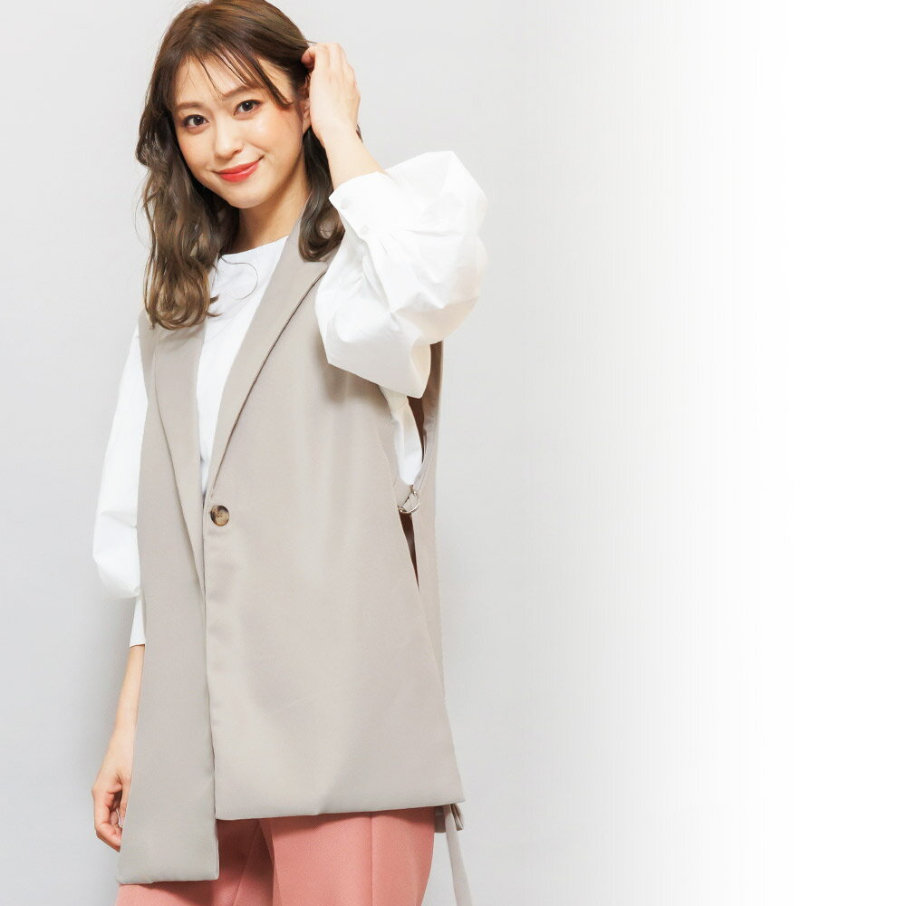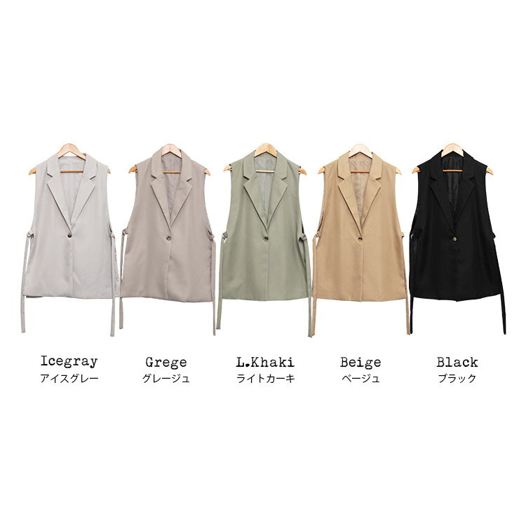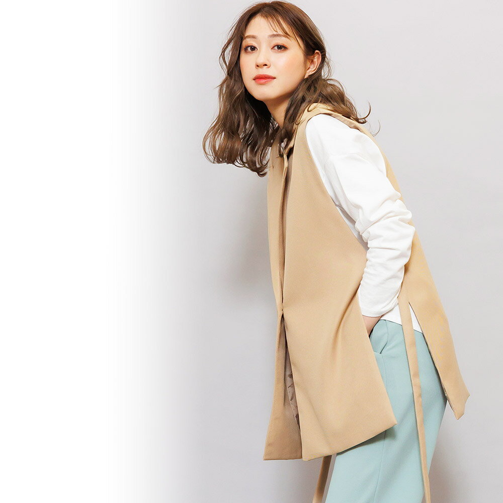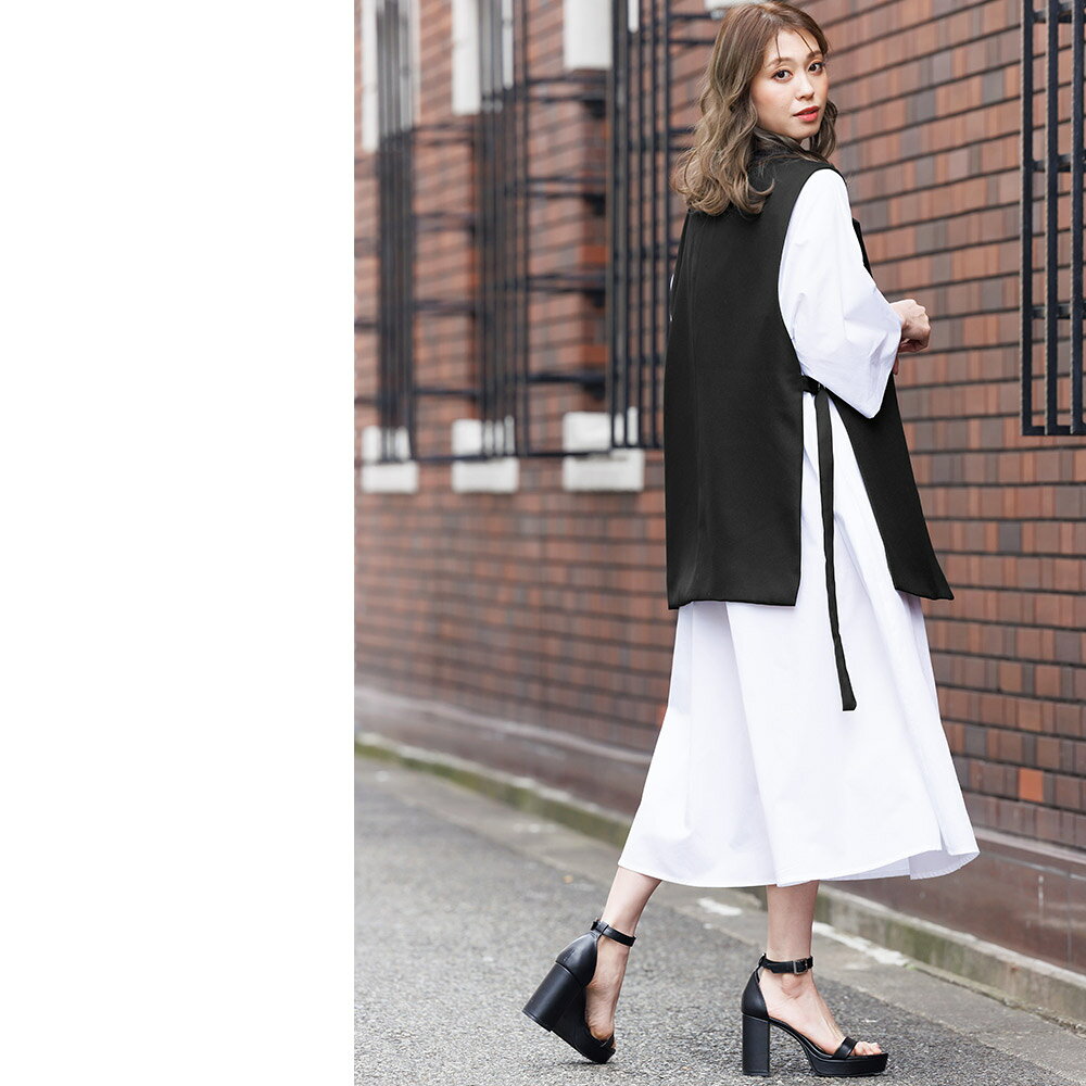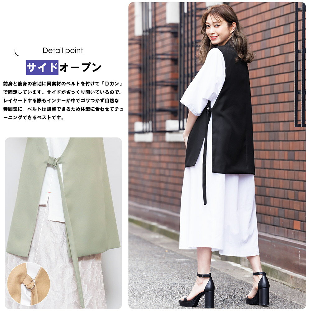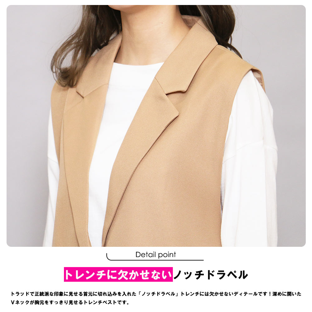 【半額クーポン配布中☆】オープンサイドトレンチベスト ジレ ノースリーブ 黒 無地 M トップス カーディガン レディース 秋 冬 春 きれいめ ゆったり ミリアンデニ