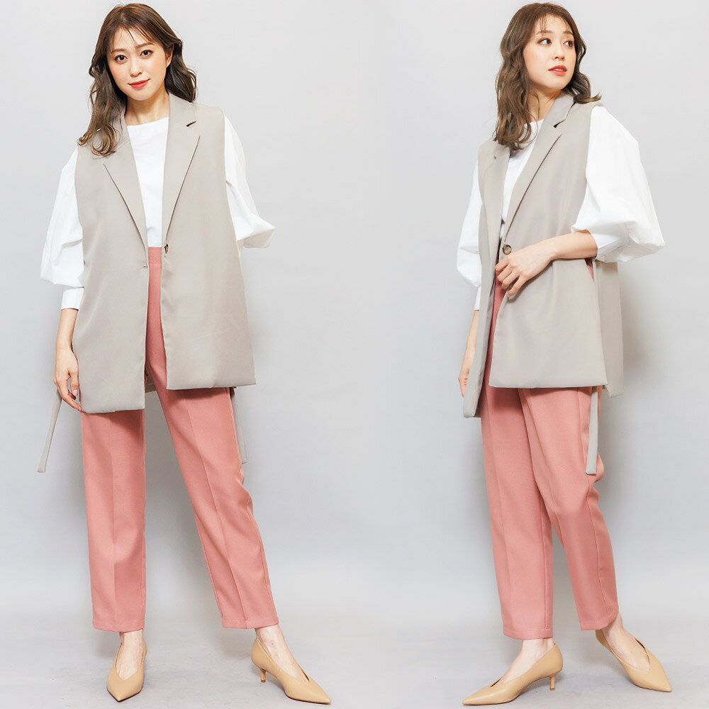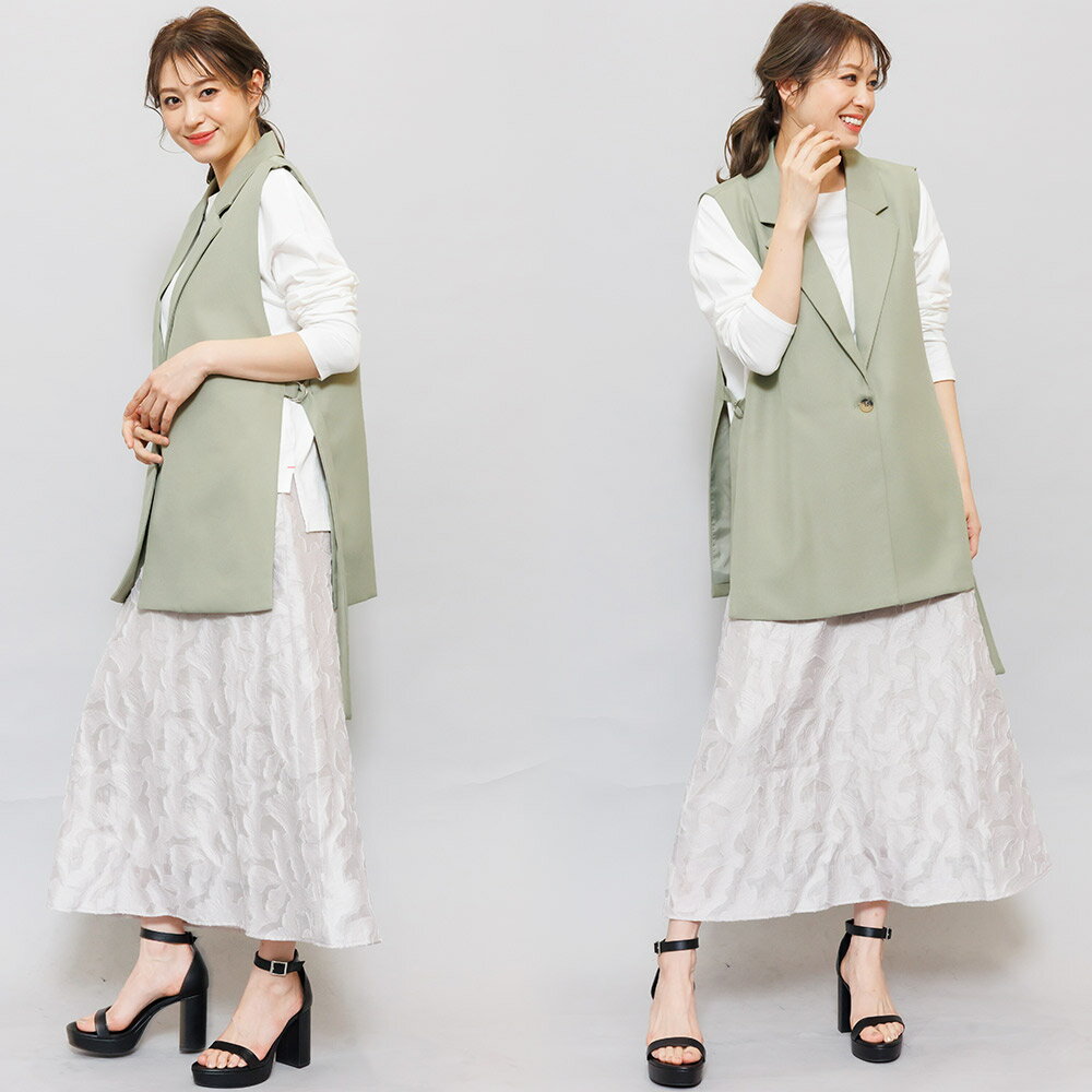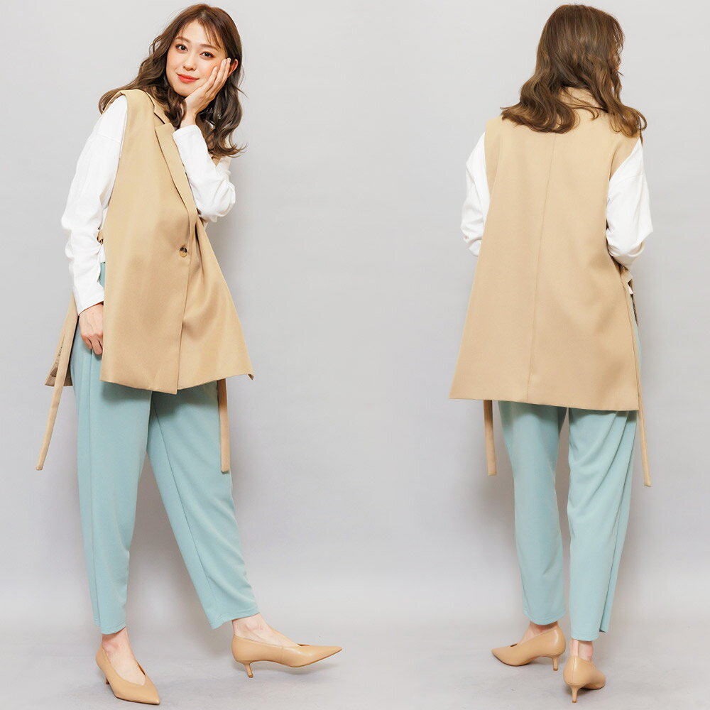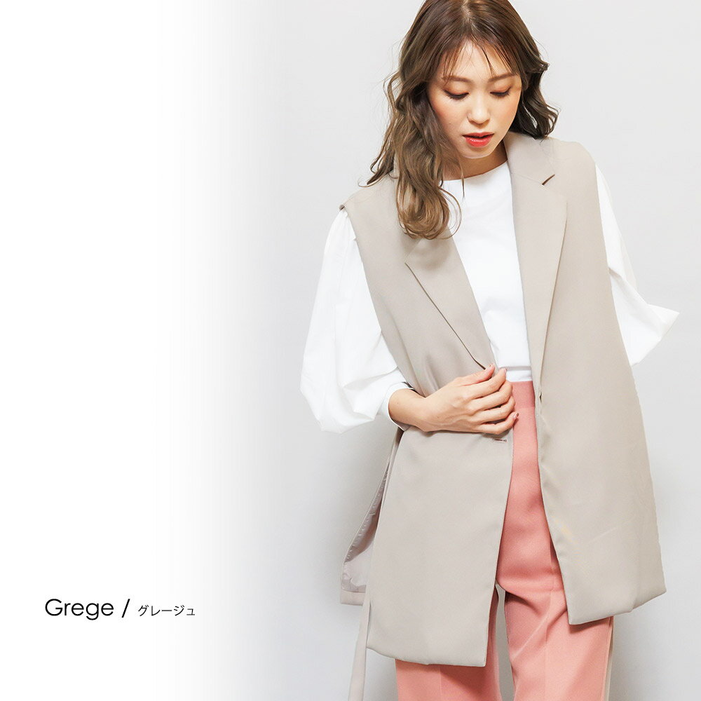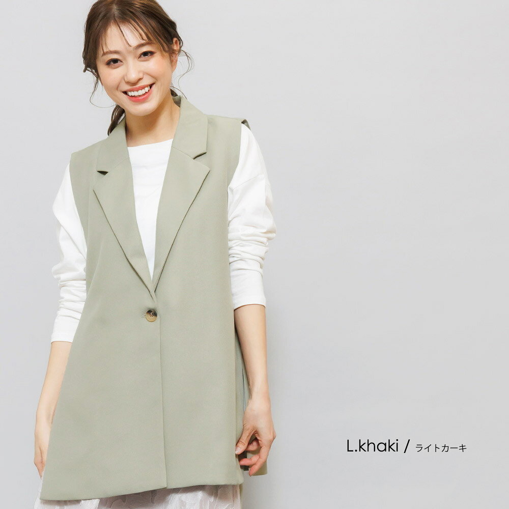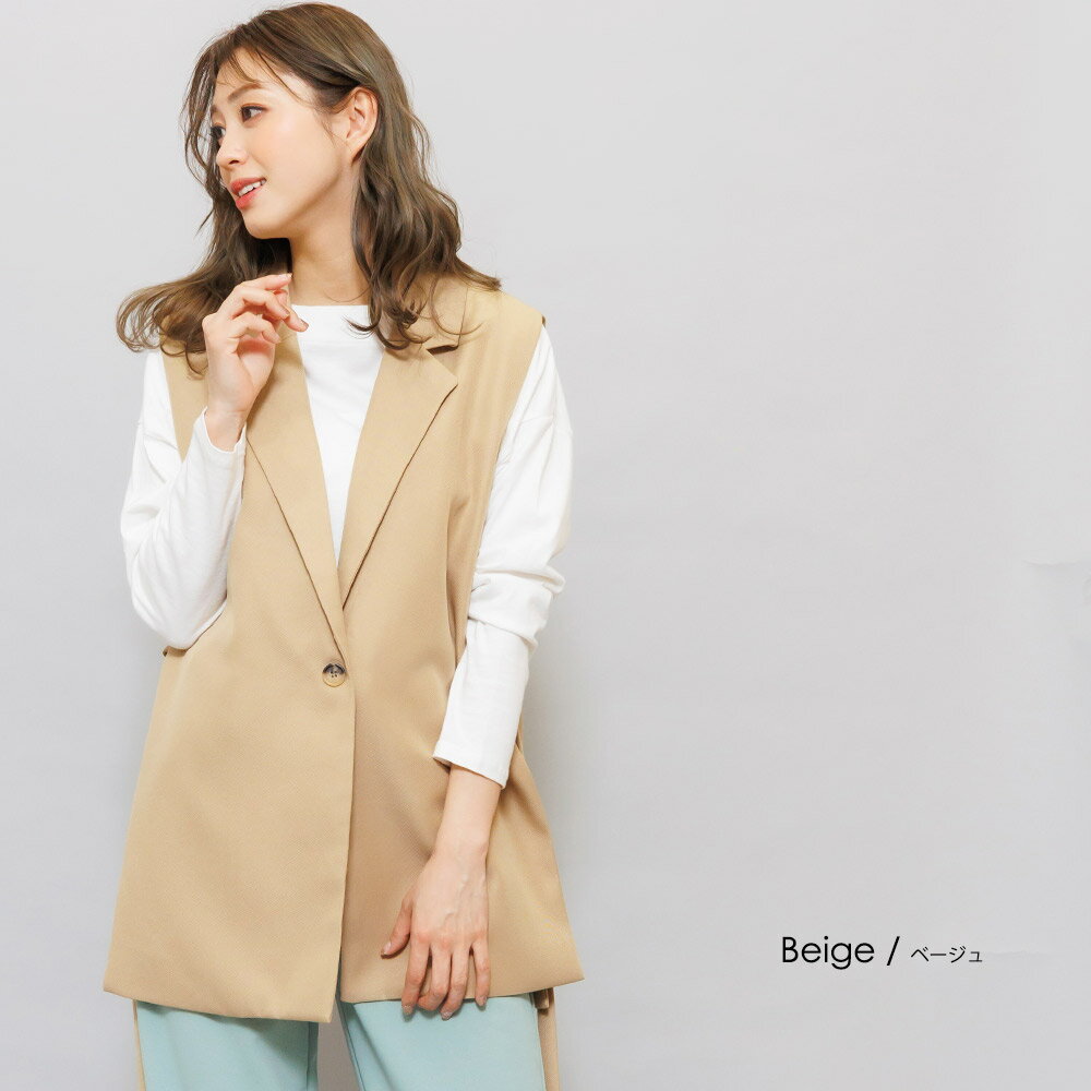 【半額クーポン配布中☆】オープンサイドトレンチベスト ジレ ノースリーブ 黒 無地 M トップス カーディガン レディース 秋 冬 春 きれいめ ゆったり ミリアンデニ