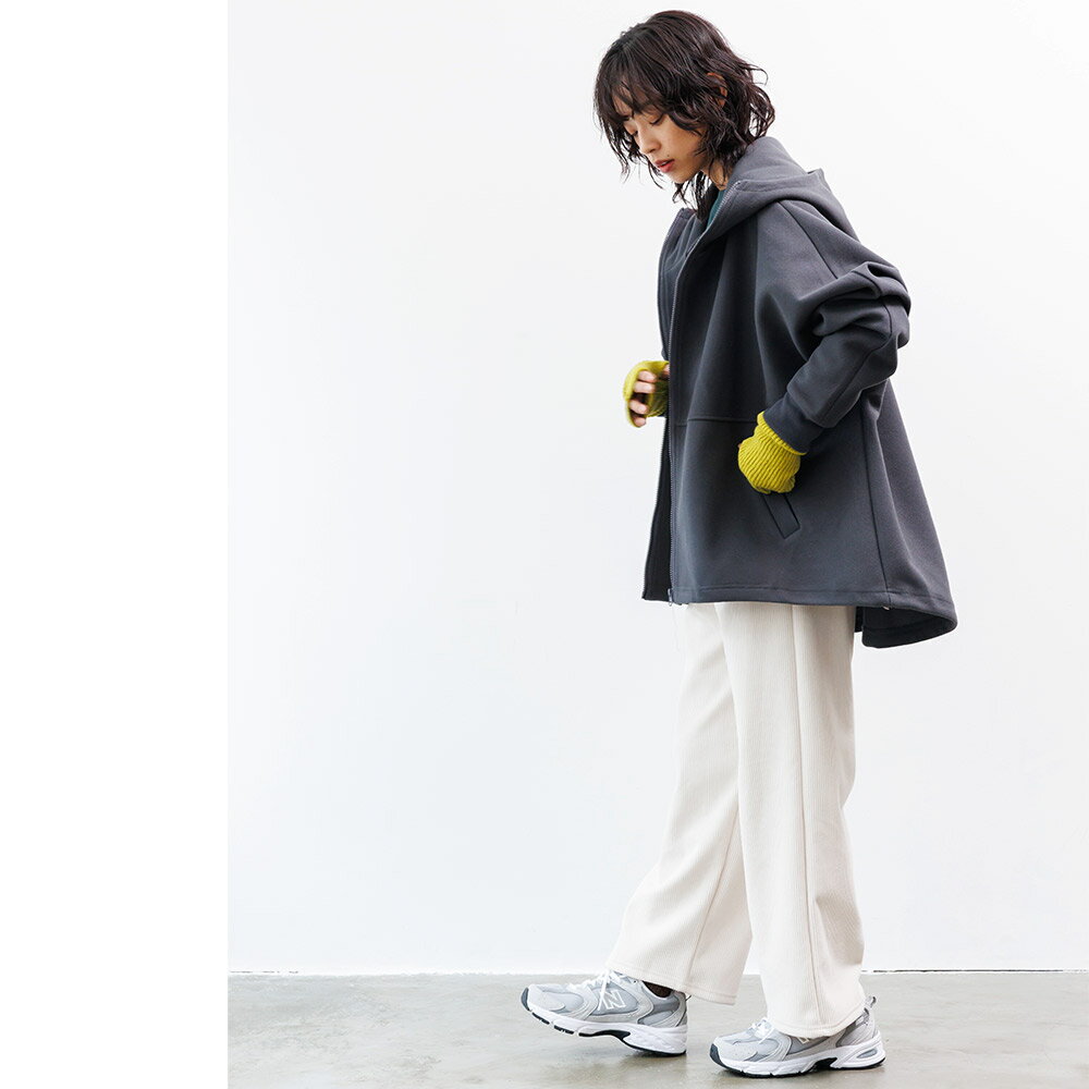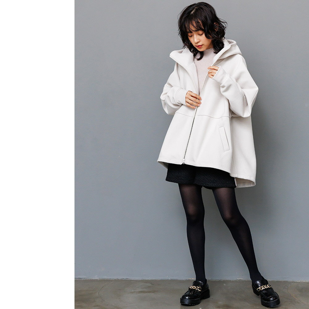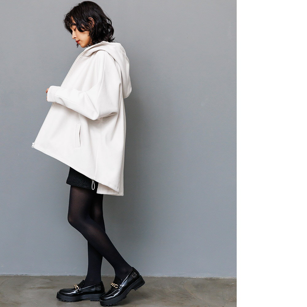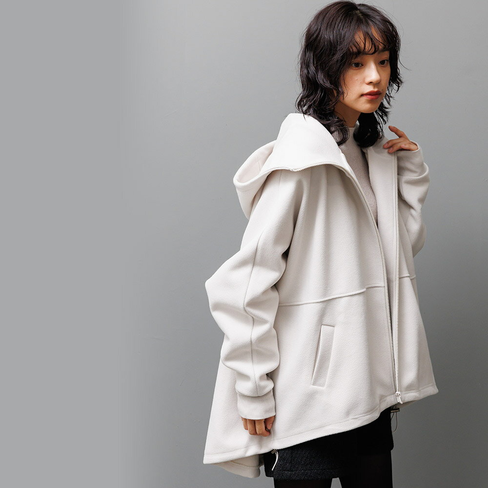 【17%OFFクーポン☆】フェイクウールビッグパーカー フード 長袖 ジップアップ 無地 アウター レディース 冬 M L ミリアンデニ