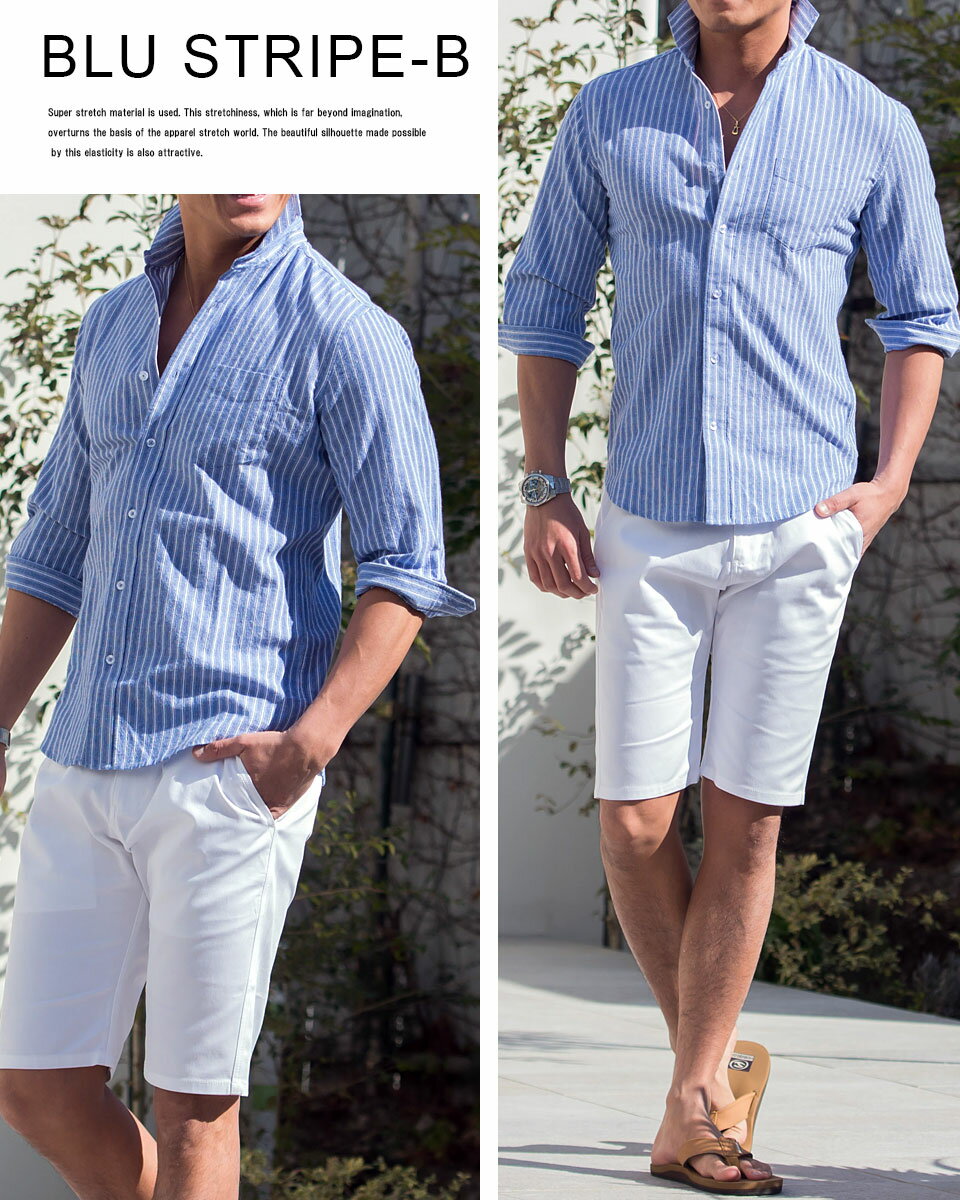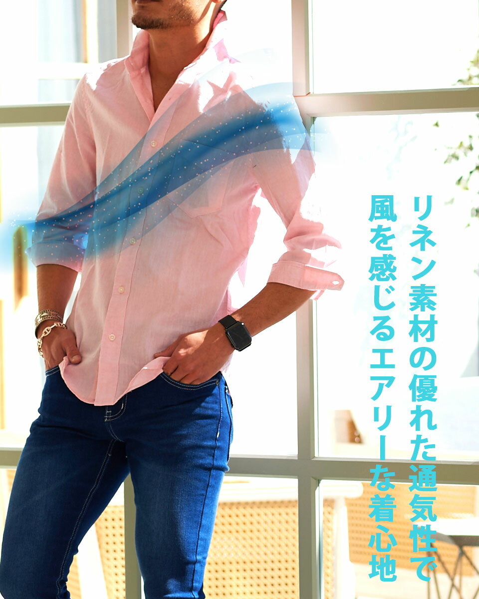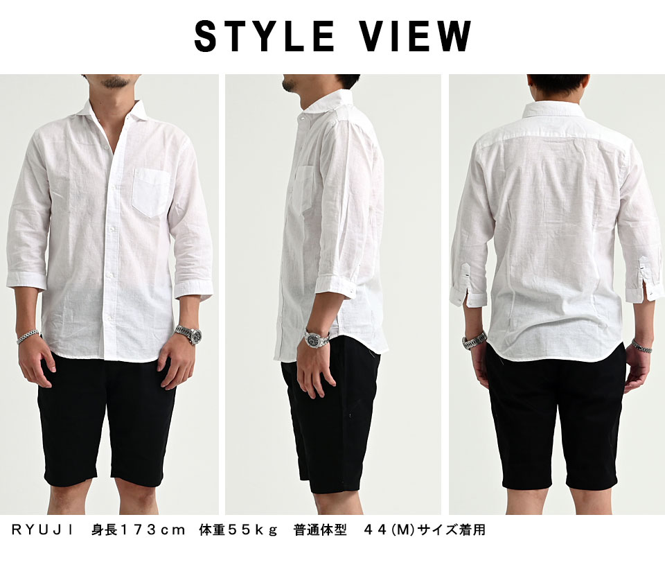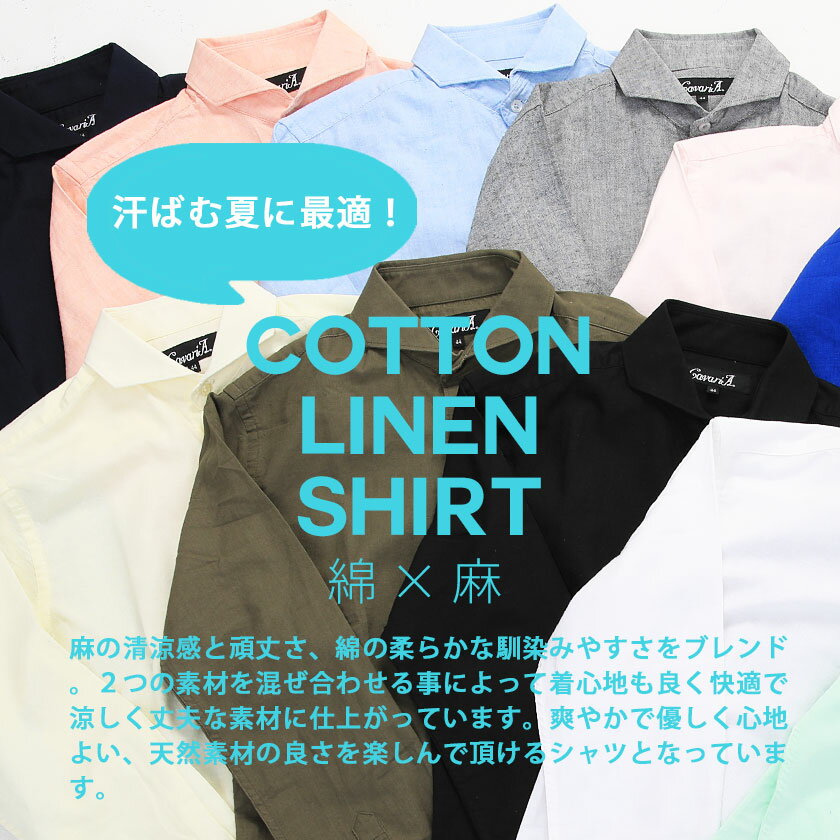 送料無料"綿麻ホリゾンタルカラー7分袖シャツ/全12色"メンズ 20代 30代 40代 50代 ファッション 服 ストライプシャツ 無地 シンプル 大人 薄手 7分袖シャツ 七分袖シャツ 白 青 紺 黒 リゾート 麻シャツ リネンシャツ トップス 夏 春 ストライプ柄 綿 コットン プレゼント
