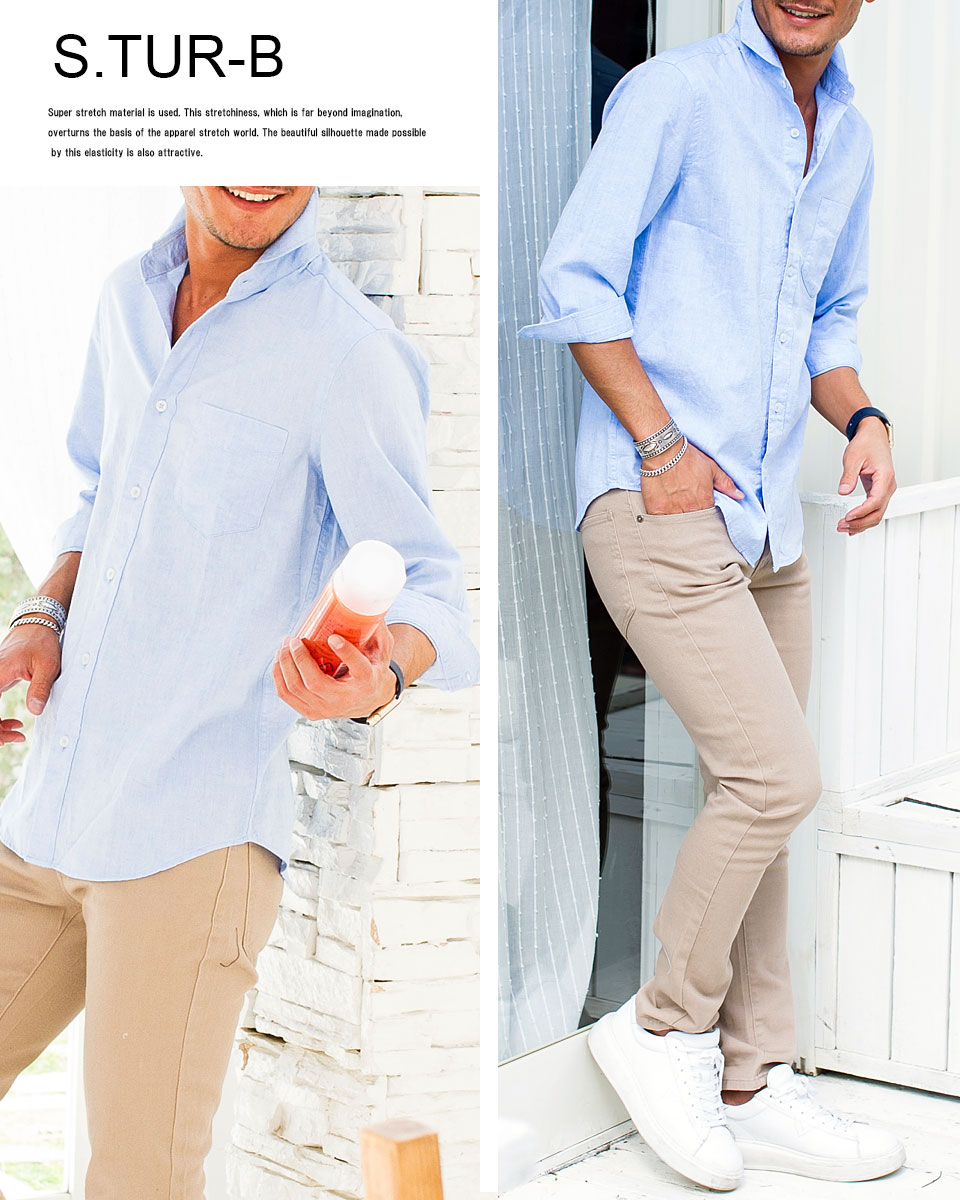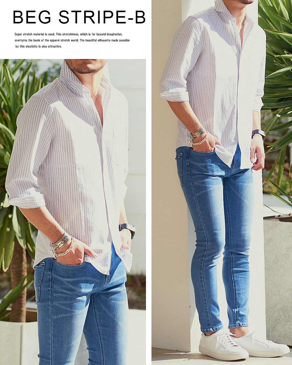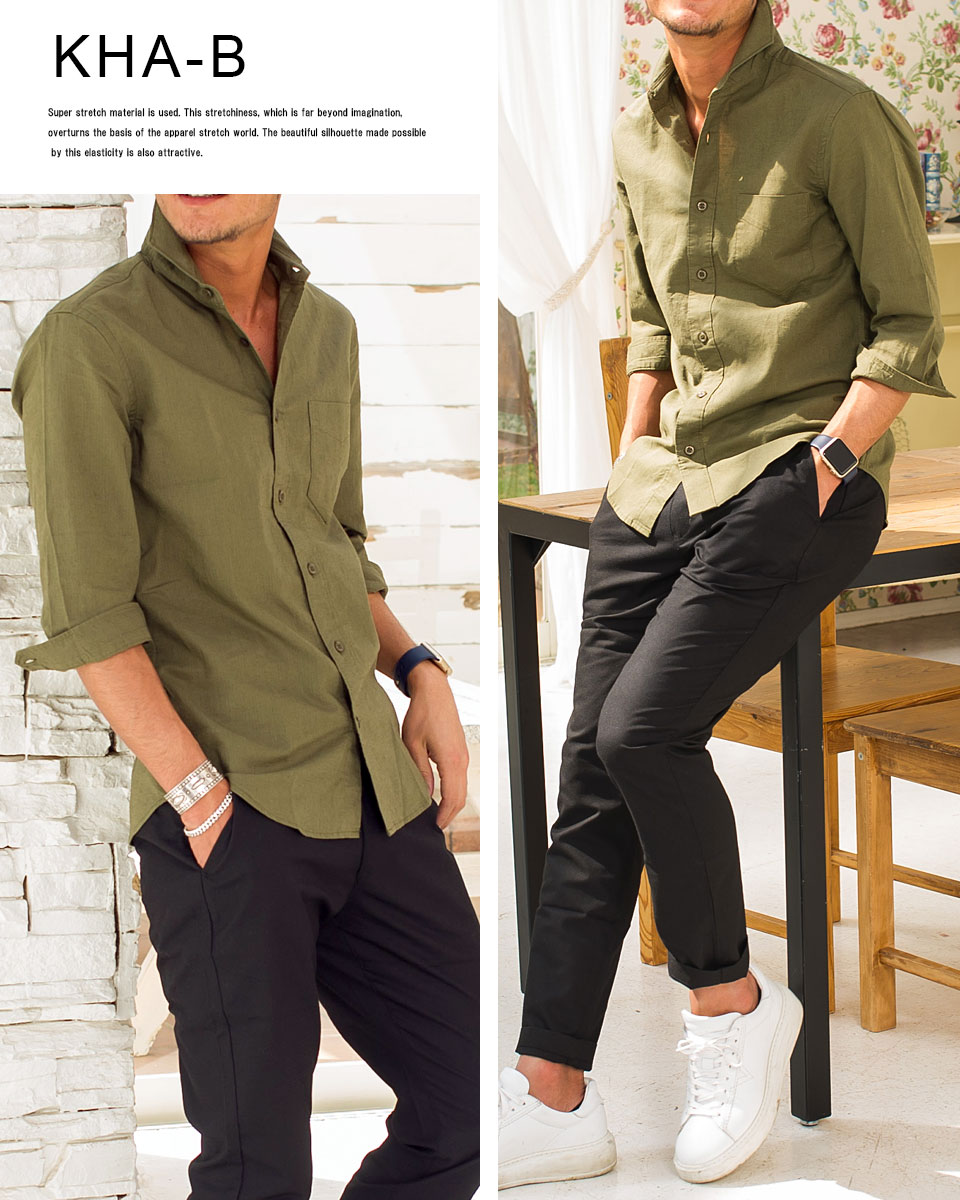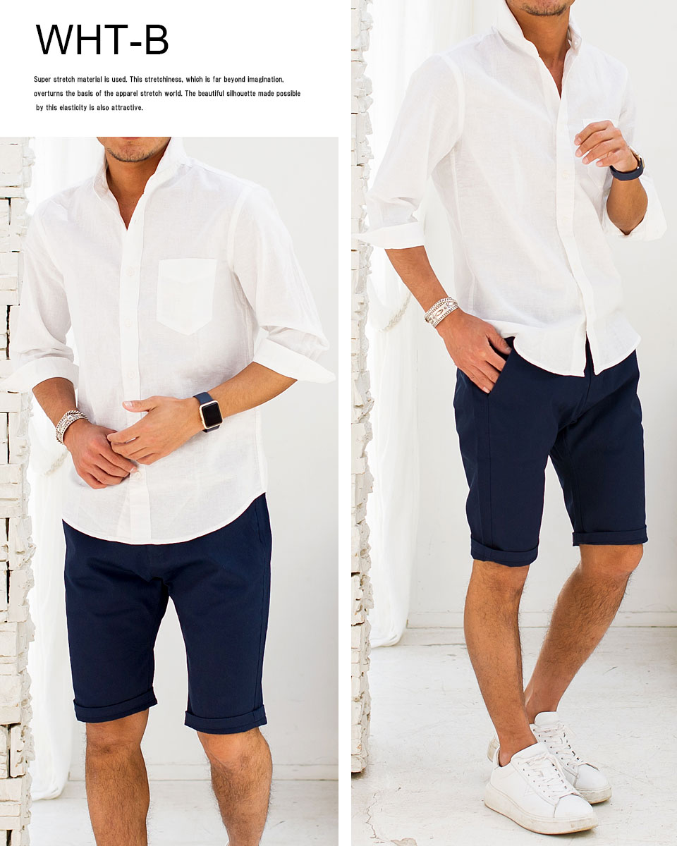 送料無料"綿麻ホリゾンタルカラー7分袖シャツ/全12色"メンズ 20代 30代 40代 50代 ファッション 服 ストライプシャツ 無地 シンプル 大人 薄手 7分袖シャツ 七分袖シャツ 白 青 紺 黒 リゾート 麻シャツ リネンシャツ トップス 夏 春 ストライプ柄 綿 コットン プレゼント