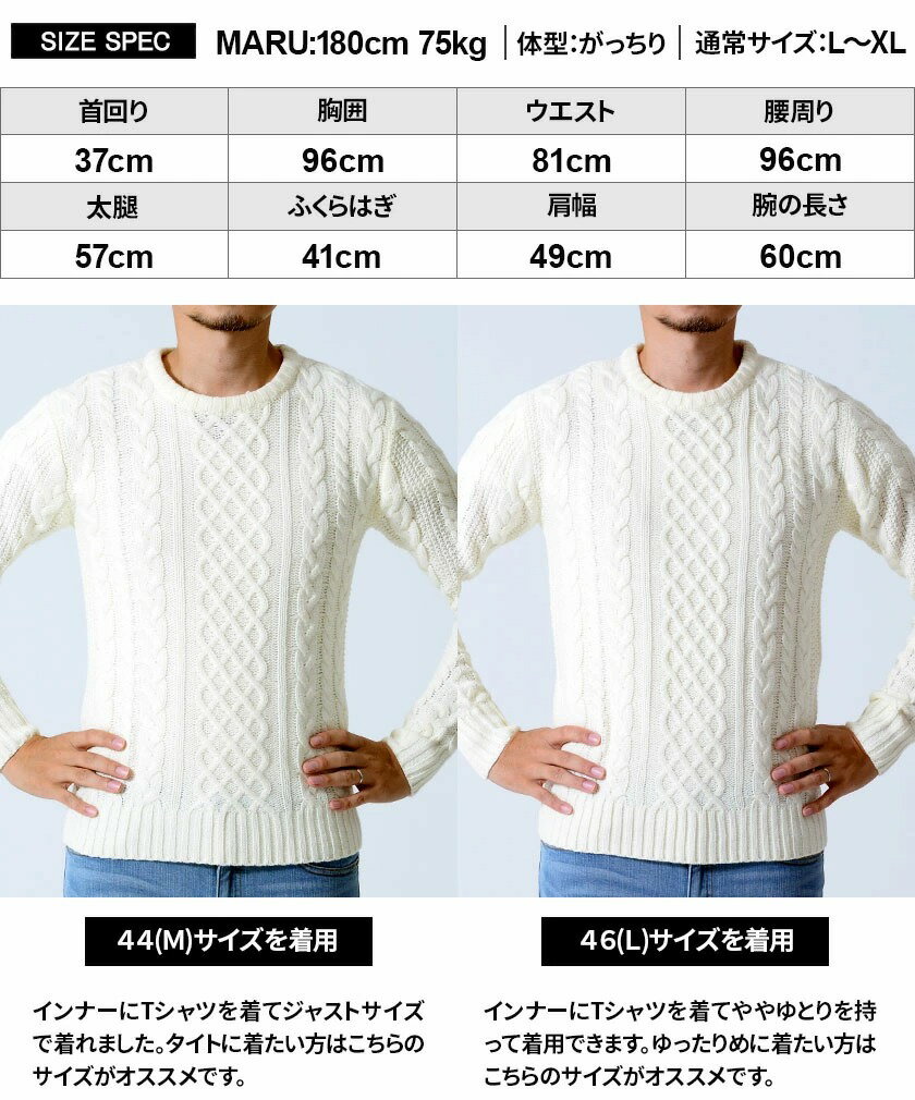 "ケーブル編みクルーネック長袖ニット/全15色"ニット セーター ニットソー メンズ 20代 30代 40代 50代 大人 ファッション 長袖 長袖ニットソー ケーブル編み ケーブルニット トップス きれいめ 無地 丸首 シンプル アクリル アクリルニット 黒 白 冬 秋冬 防寒 暖かい