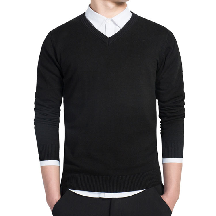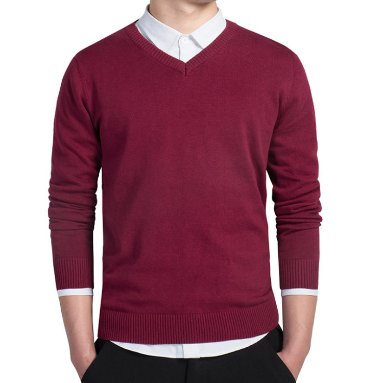 Vネック ニットセーター 無地 ウォッシャブル メンズ ビジネス カジュアル セーター 洗える コットン100% 秋 冬 5色展開