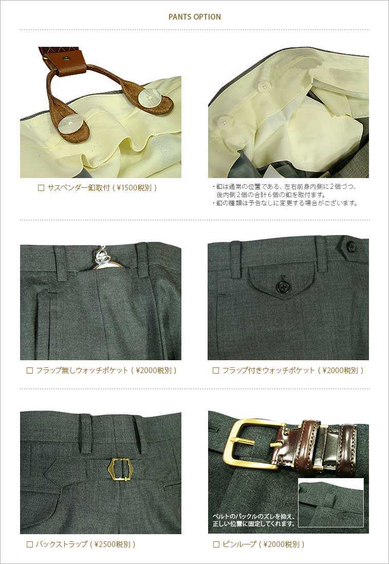 トラディショナルパンツ製作所 イージーオーダー / パターンオーダーパンツ / オーダースラックス[注]ご選択の生地、お直し、有料オプションによって後日価格を修正してご案内いたします。ご了承の上、ご注文ください。