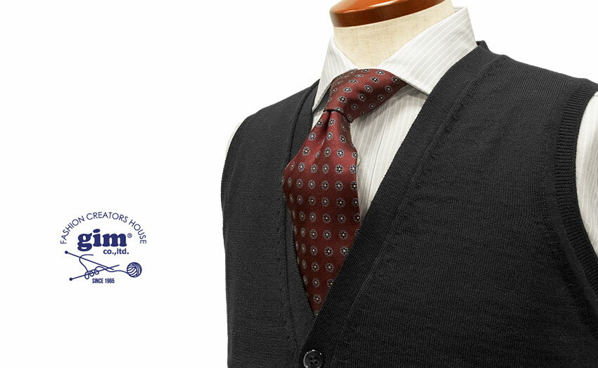 ■ gim / ジム [ 前割れ ] ニットベスト エキストラファインメリノウール天竺 WASHABLE [ made in japan / 日本製 ] [ 15380060 ] (SVY) ニット/セーター/メンズ/紳士 【楽ギフ_包装】【送料無料】