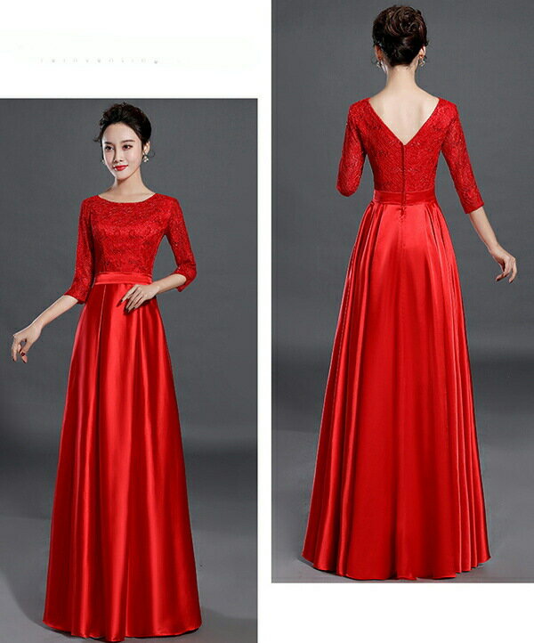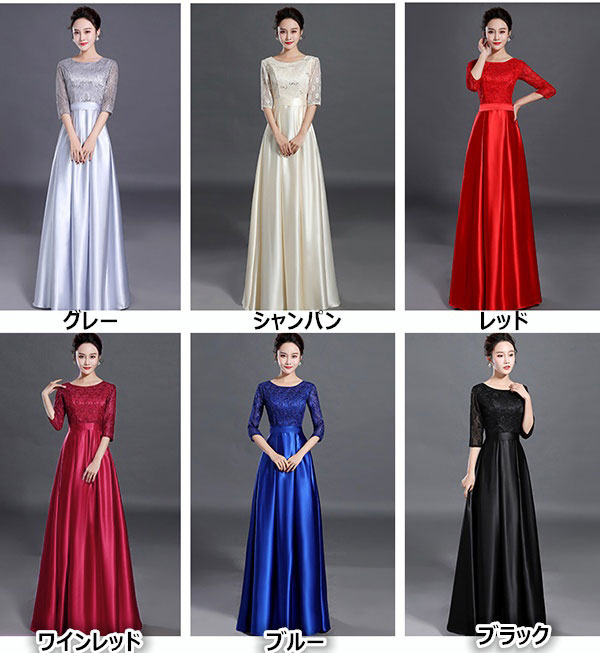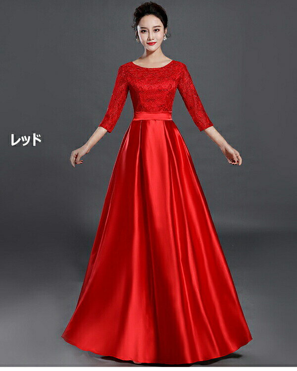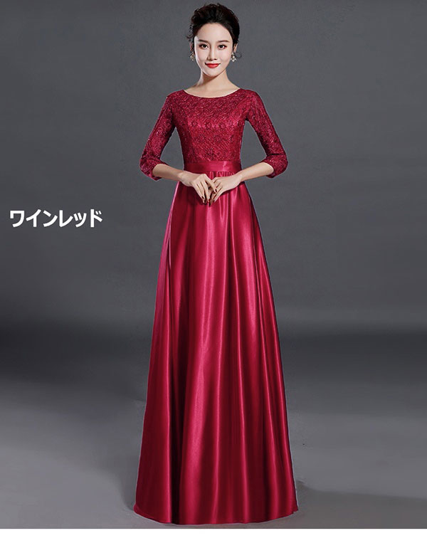 ドレス 大人 ピアノ 発表会 ロングドレス 演奏会 結婚式 母親 ドレス ピアノ発表会 袖付き ロング 全6色ドレス パーティードレス 大きいサイ レッド ブラック ワインレッド ブルー【S/M/L/XL/2XL/3XL/4XL/5XL】da687s1