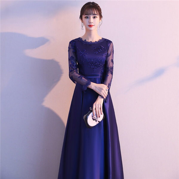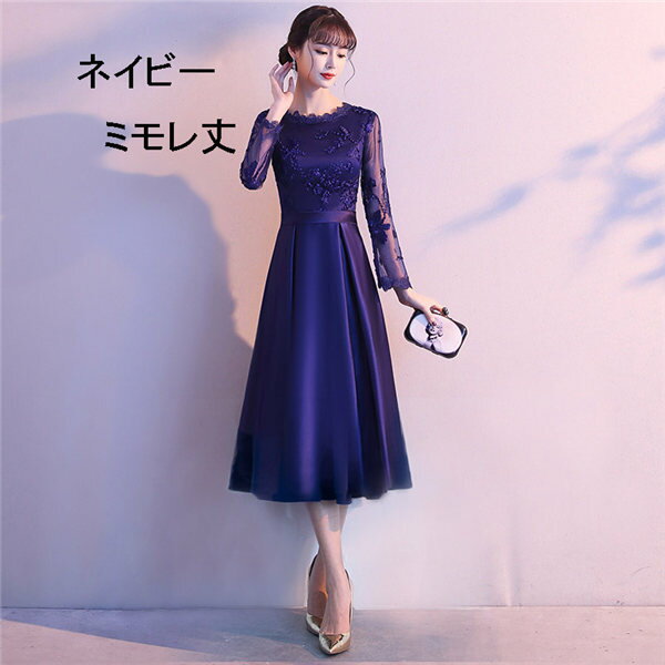 ドレス 大人 ピアノ 発表会 ロングドレス ミモレ丈 演奏会 演奏会用ドレス 袖付き ピアノ発表会 黒 結婚式 高校生 パーティードレス 演奏会ドレス 母親 コンクール イブニングドレス ロング ネイビー レースドレス 大きいサイズ お呼ばれ da453d3