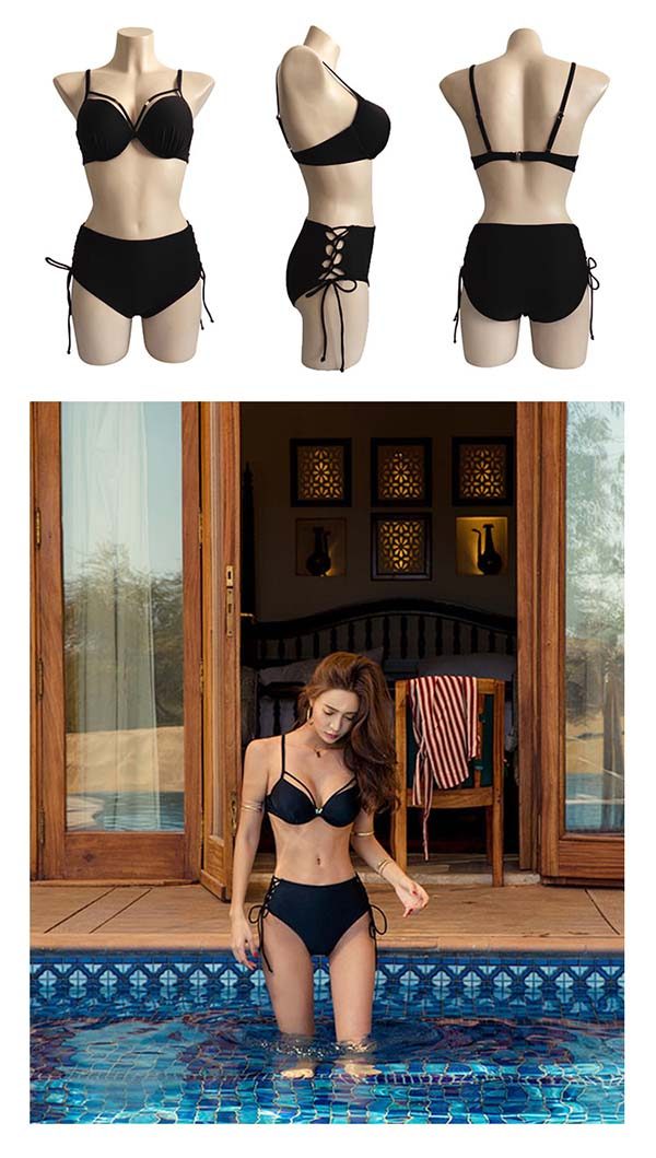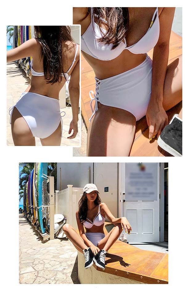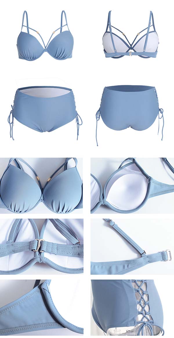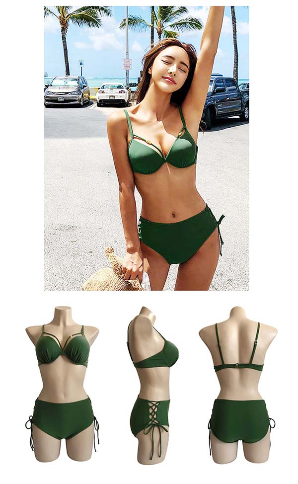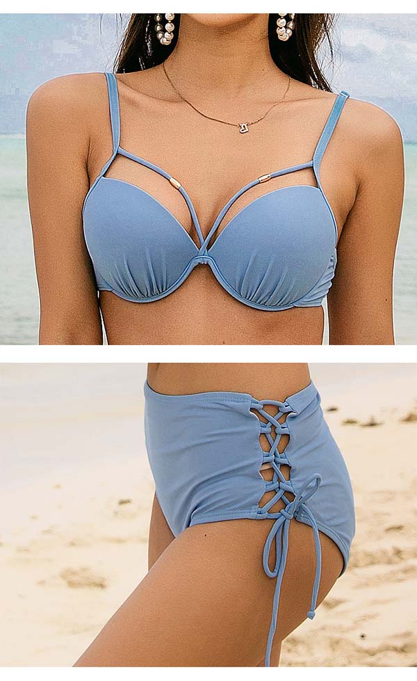 2点セット 水着 レディース 体型カバー ビキニ 編み上げパンツ 韓国 可愛い かわいい セクシー 水色 スカイブルー ワイヤー入り ビキニ水着 上下セット 小胸 プチ胸 海 ビーチ 沖縄 プール 温泉 パッド ワインレッド ブルー グリーン ブラック ホワイト M L 2L df025t2t2n1
