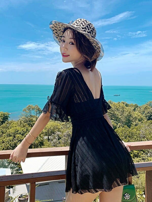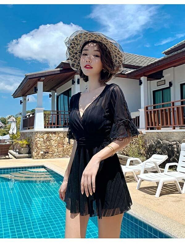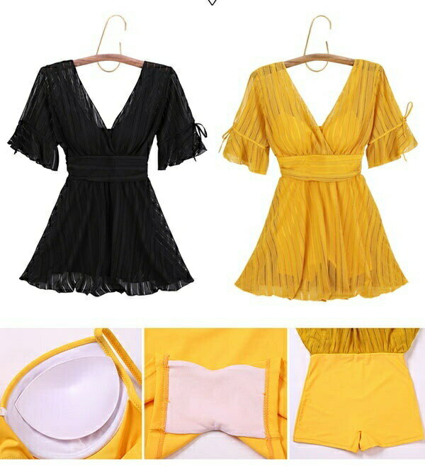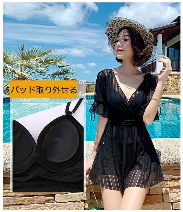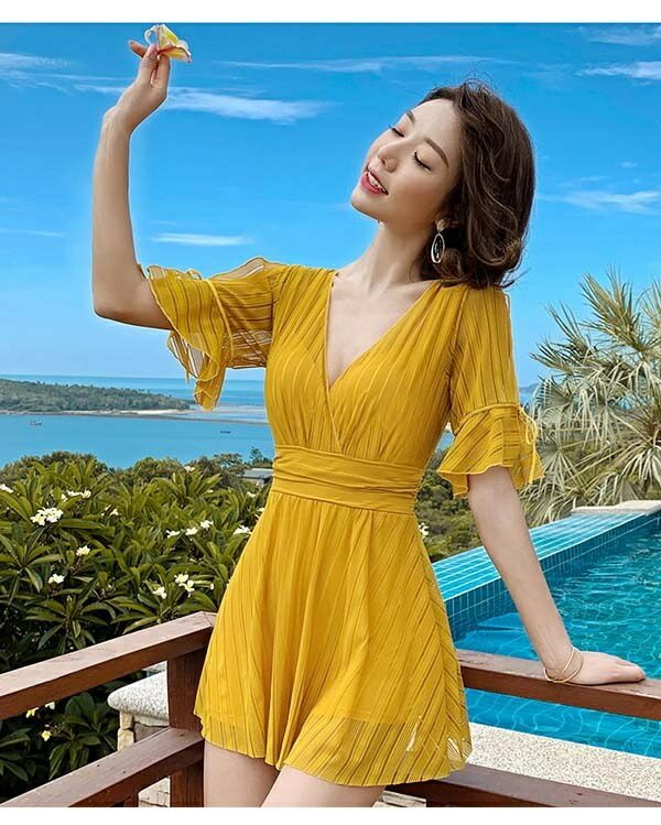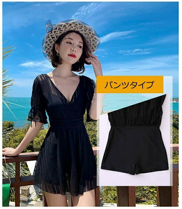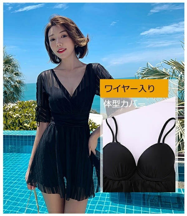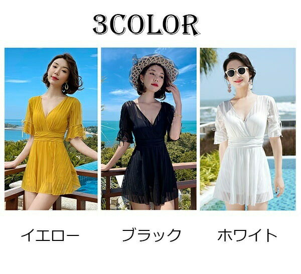 ワンピース水着 大きいサイズ 水着 ぽっちゃり レディース ぽっちゃり水着 袖あり 体型カバー 韓国 可愛い かわいい 着痩せ ワイヤー入り ビーチ 海デート 温泉 韓国 女性用 セクシー 大人可愛い かわいい ブラック イエロー ホワイト df127n1