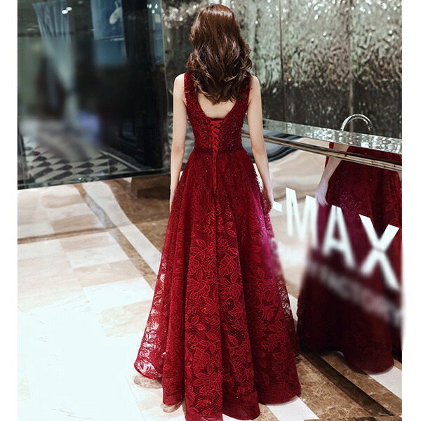 ドレス 大人 ピアノ 発表会 ロングドレス 演奏会 演奏会用ドレス 赤 ピアノ発表会 結婚式 高校生 パーティードレス 演奏会ドレス 大きいサイズ 母親 コンクール イブニングドレス ロング 大きいサイズドレス Vネック ノースリーブ 小さいサイズ XS ワインレッド df054y6y6m3