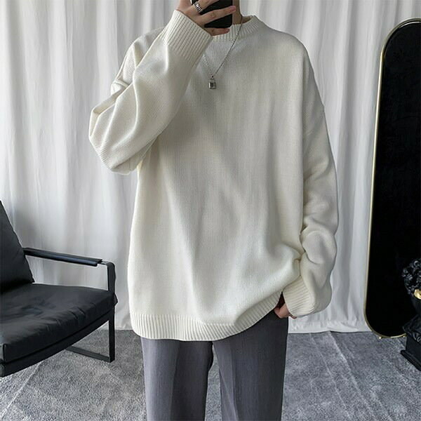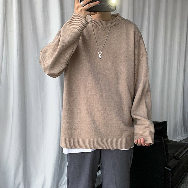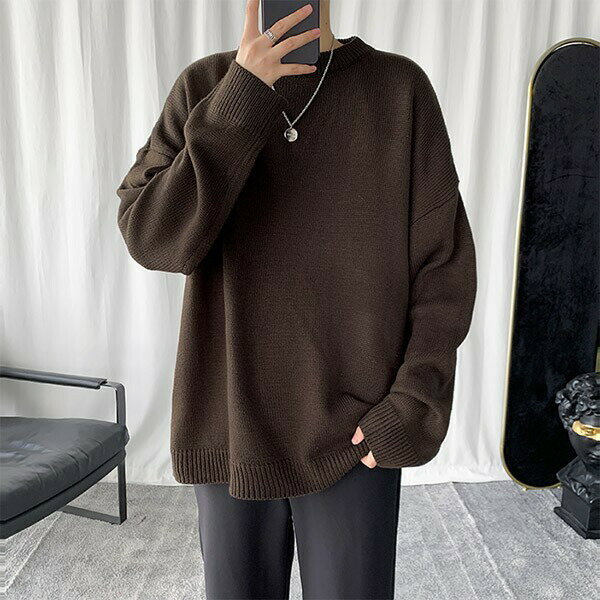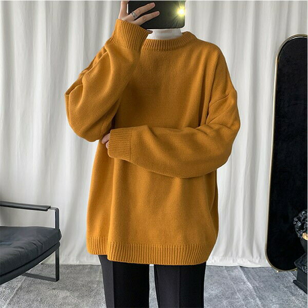 ニット セーター メンズ 秋冬 7カラー選べる ゆったり トップス カットソー 暖かい 長袖 シンプル 無地 オーバーサイズ 韓国風 ゆったり 大きいサイズ おしゃれ カジュアル ブラウン ブラック ホワイト ブルー イエロー グレー eg005jcjcg5