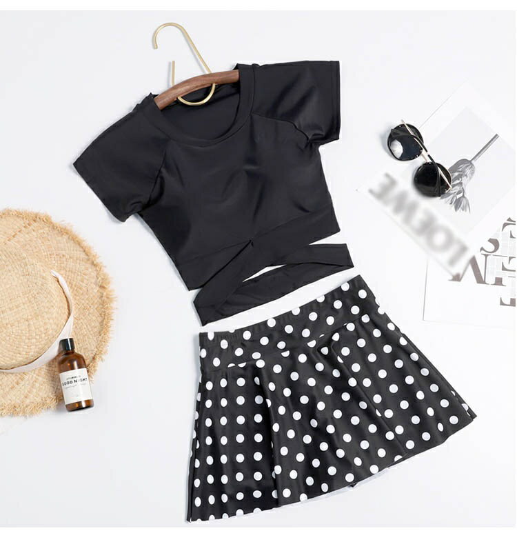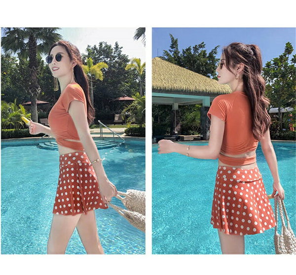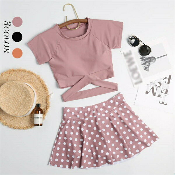 水着 レディース 袖あり 体型カバー セパレート キュロットスカート ドット 水玉 ビキニ 温泉 かわいい セクシー 韓国風 大人 女性用 可愛い みずぎ M L 2L 3L df001d4d4n1
