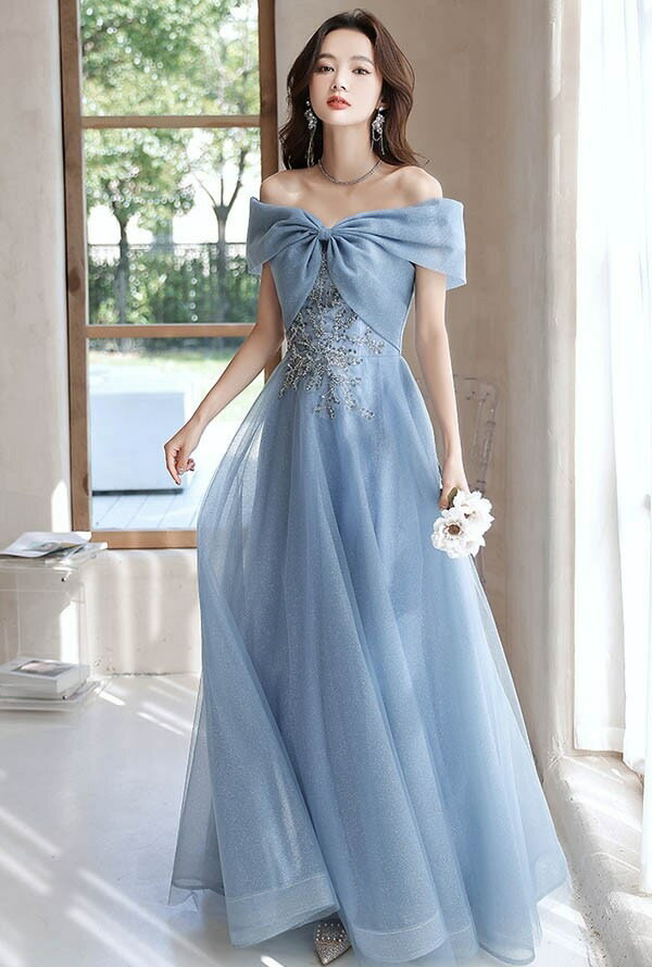 ドレス 大人 ピアノ 発表会 演奏会用ドレス ロングドレス 演奏会 イブニングドレス 結婚式 母親 ピアノ発表会 中学生 パーティードレス 発表会ドレス ミモレ丈 高校生 大きいサイズ ロング 袖付き ビッグリボン オフショルダー 半袖 ハワイ リゾートワンピ 水色 da174n1n1n1