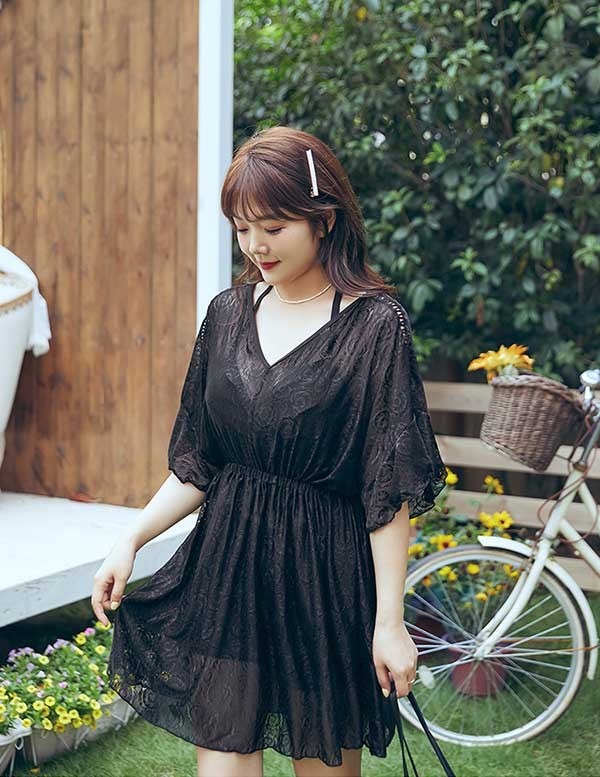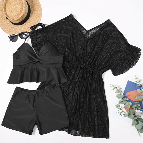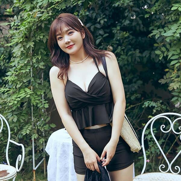 3点セット 水着 大きいサイズ ぽっちゃり レディース ぽっちゃり水着 袖あり 体型カバー タンキニ水着 トップス付き クロスデザイン セット水着 韓国 ガール 可愛い 痩せ見え 温泉 ビーチ プール 海 水泳 セクシー オトナ女子 かわいい 黒 ブラック df182n1n1g5