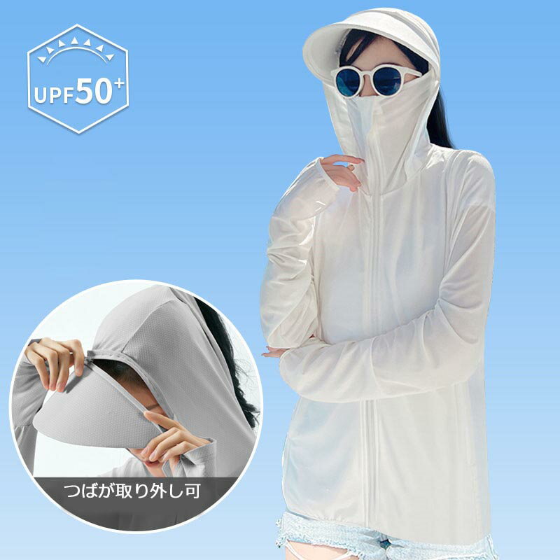 360度紫外線対策 着るだけでUV対策!つば広いフードで 首や顔まで守れる万能パーカー 伸縮性、通気性抜群な素材で 夏でも涼しく運動しやすい レディース uvカットパーカー 指穴 涼感 首元 UPF50+ ひんやり 吸水速乾 3L つば付き 自転車用 軽量 長袖 春 夏 秋 薄手dd216c0c0g5