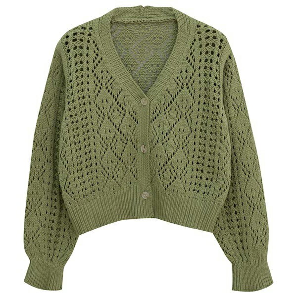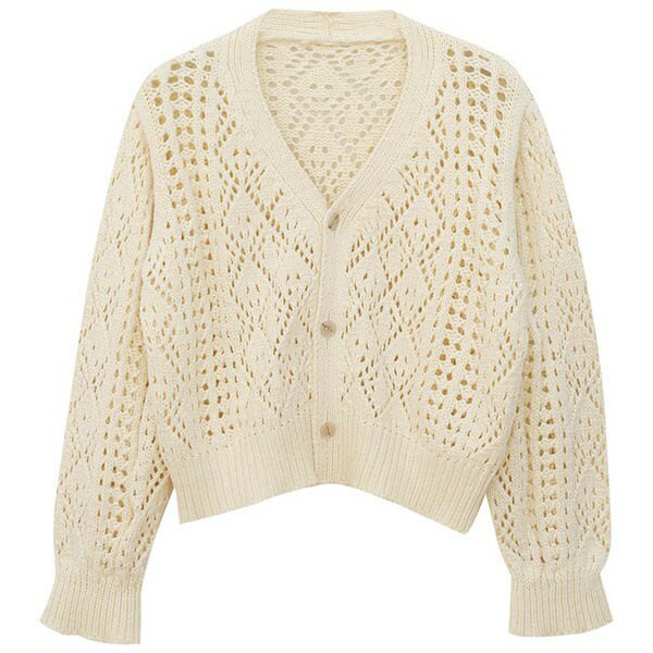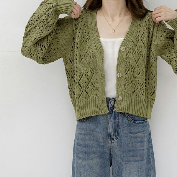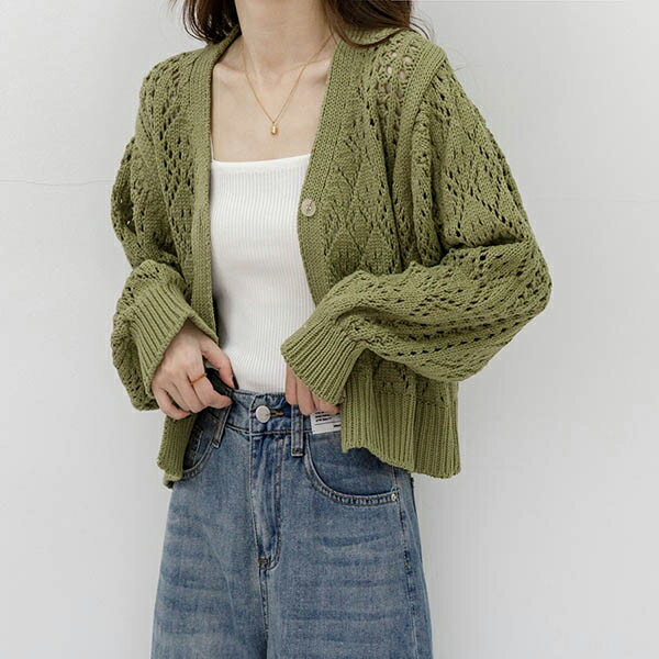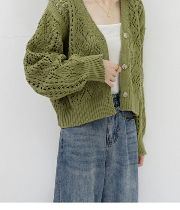クロシェ編み 夏 トップス サマー ニット カーディガン 透かし編み クロシェニット かぎ編み フロントボタン ボレロ 長袖 ショート セーター 日焼け対策 冷房対策 冷え性対策 eh089x1x1g5