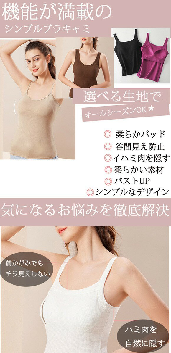 キャミソール ブラキャミ カップ付き 盛り タンクトップ インナー レディース ルームウェア 盛り ノンワイヤー キャミブラ ブラトップ 夏 吸汗速乾 肌着 インナー 下着 セクシー 大きいサイズ 小胸 女性 ブラジャー 黒 白 S M L XL 2XL 3XL bs020s1s1c6
