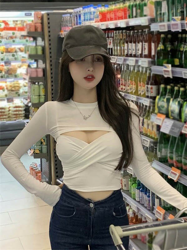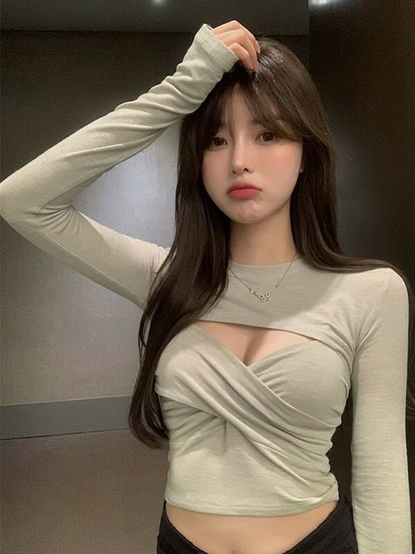 トップス 袖あり 長袖 半袖 セクシー 大きいサイズ ブラウス カットアウト 胸開きタートルネック 韓国風 大人 可愛い かわいい 秋 冬 春 夏 オフィス 通勤 20代 30代 40代 OL レディース ファッション カジュアル おしゃれ dg278n1n1jc